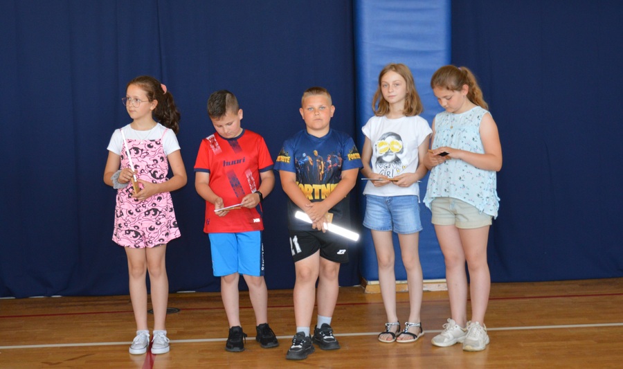 W przeddzień zakończenia roku szkolnego w sali gimnastycznej zebrali się wszyscy uczniowie klas I-III z wychowawcami.