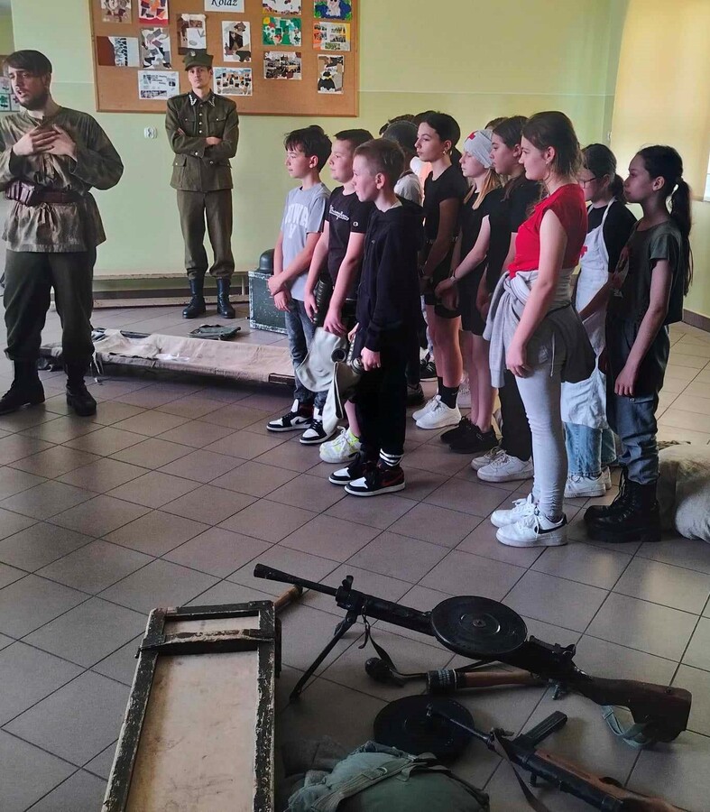 Ogrom zaprezentowanego sprzętu historycznego, ekspresyjny przekaz i osobiste zaangażowanie uczestników spotkania zrobiło na uczniach ogromne wrażenie.