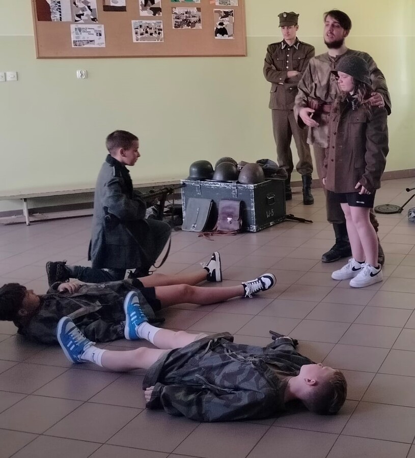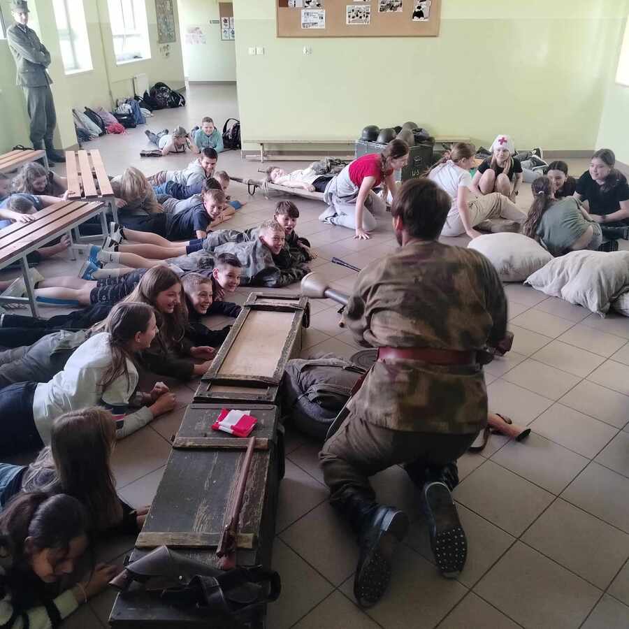 W spotkaniu wzięli udział uczniowie klas Va i Vb. Uczestnicy spotkania mieli możliwość zapoznać się ze sprzętem bojowym i wyposażeniem wojskowym. Prowadzący w nietuzinkowy sposób przedstawili szczegóły bitwy o Polskę oraz najważniejsze wydarzenia z czasów II wojny światowej - głównie Powstania Warszawskiego angażując przy tym uczniów do odgrywania poszczególnych ról w opowiadanych wydarzeniach.