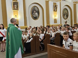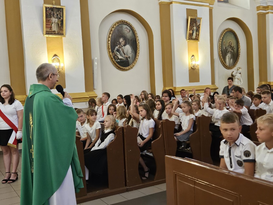Rok szkolny rozpoczęliśmy od wspólnego uczestnictwa w uroczystej Mszy świętej, którą odprawił proboszcz naszej parafii ks. kanonik Grzegorz Mituła.
