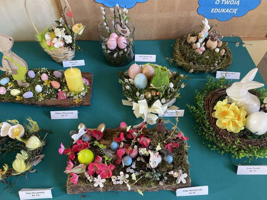 W marcu, w okresie przedświątecznym odbył się konkurs na "STROIK NA STÓŁ WIELKANOCNY". Do udziału w konkursie zostali zaproszeni uczniowie klas IV-VIII. Zadaniem uczestników było wykonanie dowolną techniką stroika wiosennego lub wielkanocnego. Organizatorkami konkursu były panie: Paulina Hazubska, Gabriela Rachel-Nowak, Agnieszka Podejma i Alina Lenort.