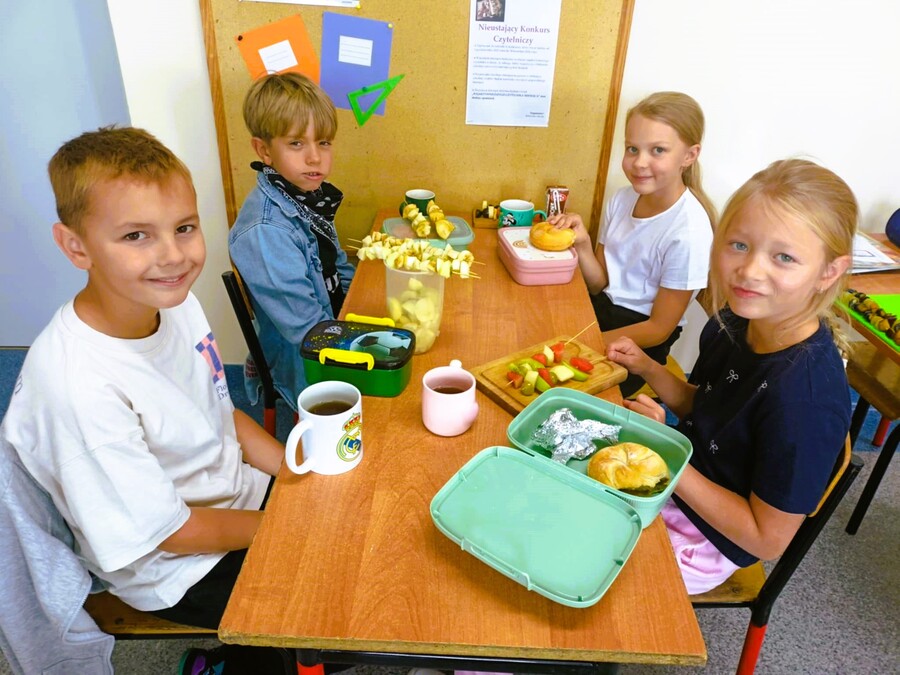 Przerwa śniadaniowa była w tym dniu wyjątkowa. Na korytarzu roznosił się słodki, owocowy zapach, a kolorowe i zdrowe szaszłyki zostały spałaszowane z ogromnym apetytem.