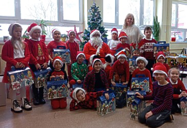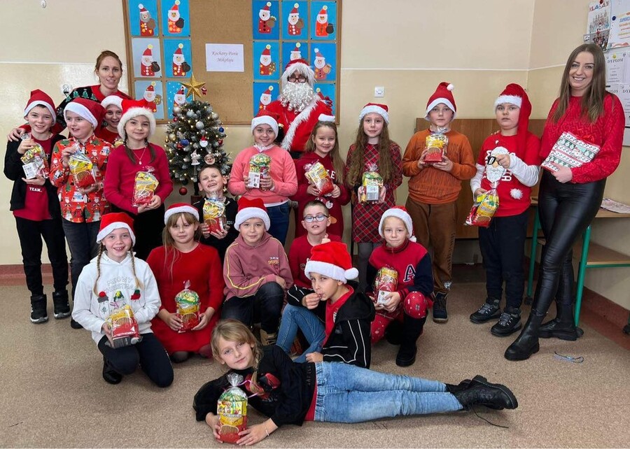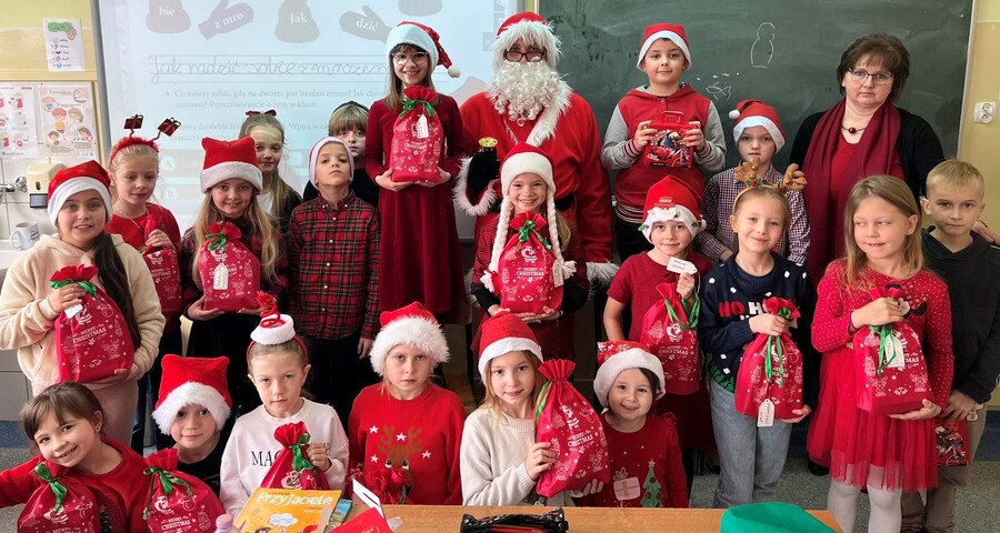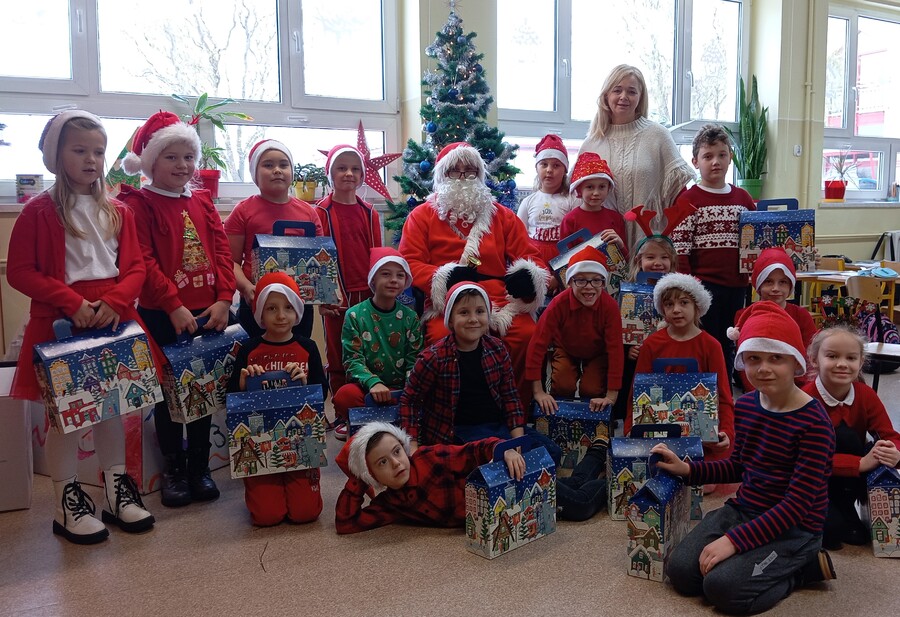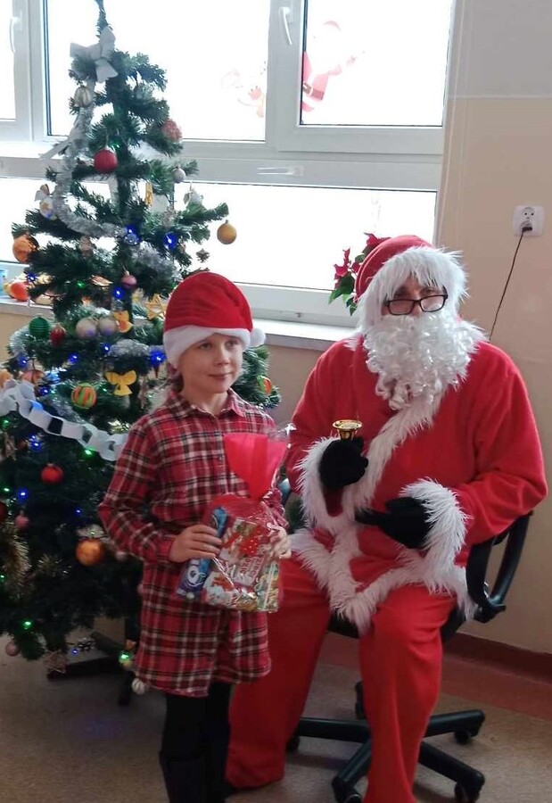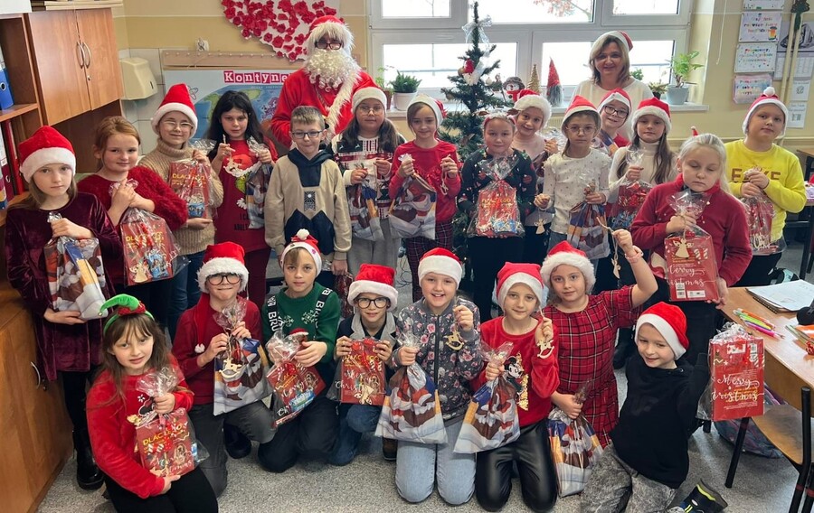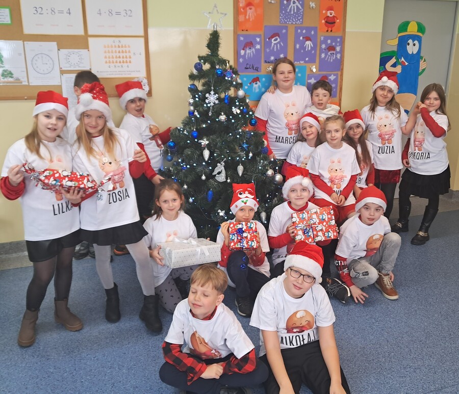 Oczywiście ten niezwykły święty od spełniania marzeń, w każdym zaułku szkoły witany był z wielką radością i wesołymi okrzykami. Podczas spotkań z Mikołajem nie zabrakło radosnych mikołajkowych piosenek, tematycznych recytacji, a wszystko to po to by zadowolić nietuzinkowego gościa. Ten, upewniwszy się, że wszystkie dzieci były grzeczne, z sobie tylko znaną serdecznością obdarowywał uczniów klas I-III prezentami, które zamówili u niego rodzice oraz wszystkich uczniów miłym upominkiem od Rady Rodziców.
