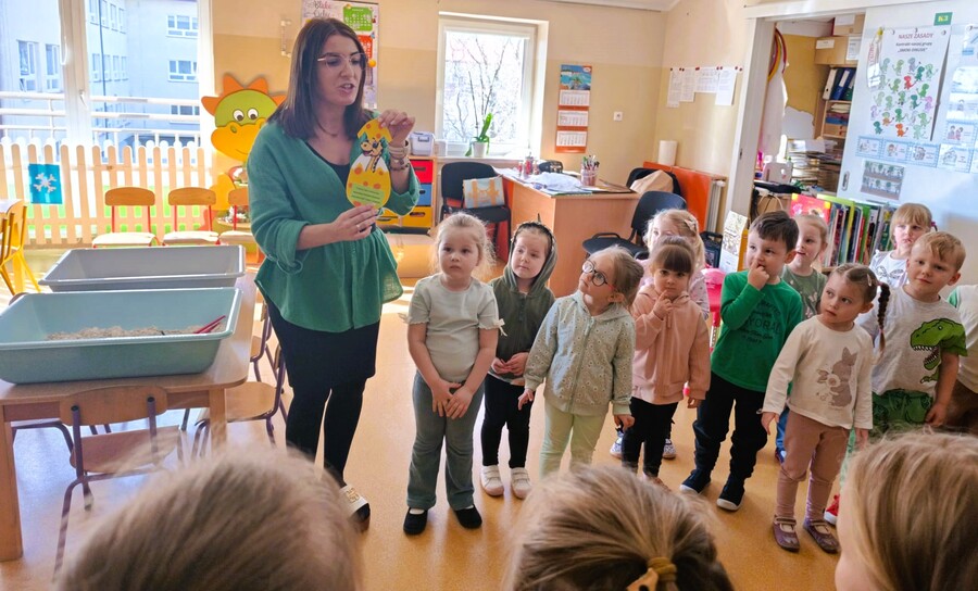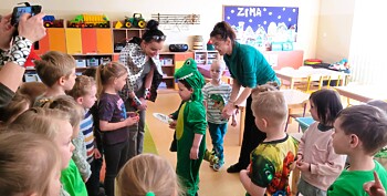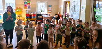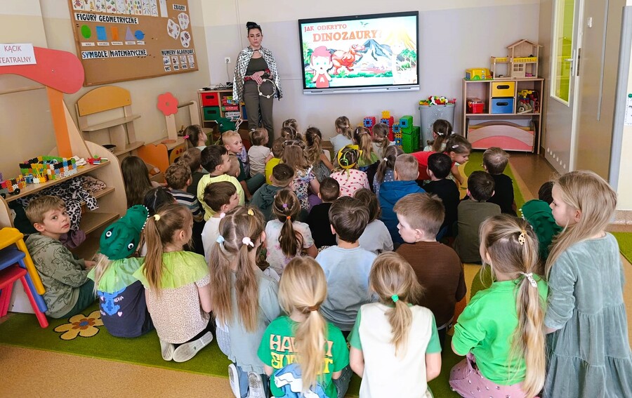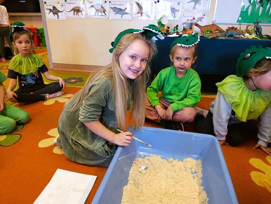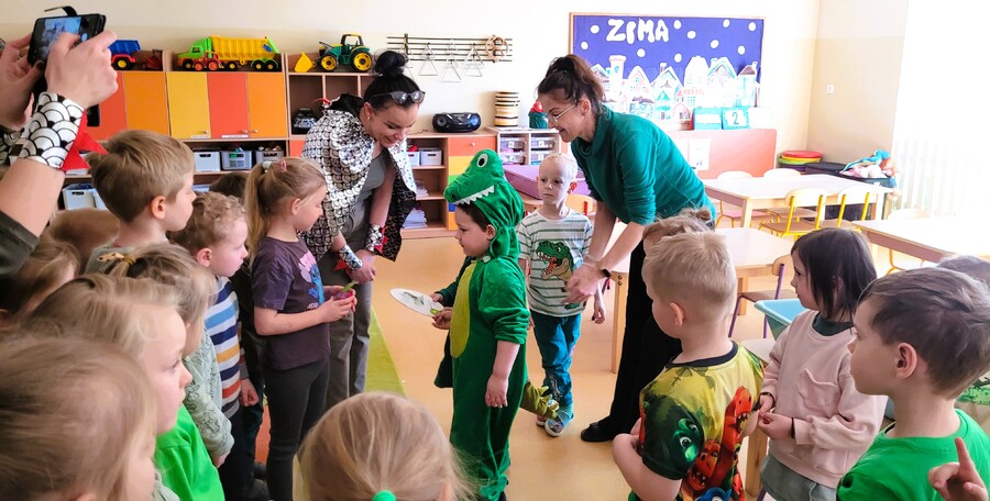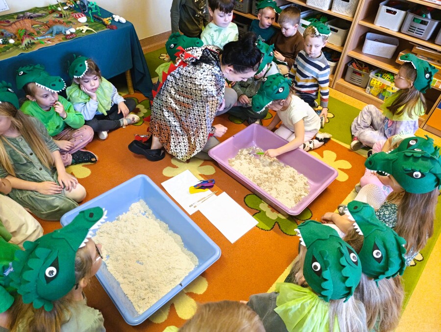 3 marca w sali Smoków Dinusiów wyjątkowo się zazieleniło. Zielone stroje, okazjonalne przebrania i wyjątkowe dekoracje przypominały przedszkolakom o obchodach Dnia Dnizaura, który przypadał w czasie ferii zimowych. Dzień wypełniły więc dinozaurowe zajęcia, zabawy i niespodzianki. Zaciekawione przedszkolaki odkrywały prehistoryczny świat i przybliżały sobie życie tych wyjątkowych gadów. Pomagały im w tym ciekawe aktywności. Przedszkolaki miały okazję zobaczyć wybuch wulkanu, wcieliły się również w paleontologów badających skamieniałości. Oczywiście dzień przeplatały odwiedziny innych grup przedszkolnych z przygotowanymi niespodziankami.