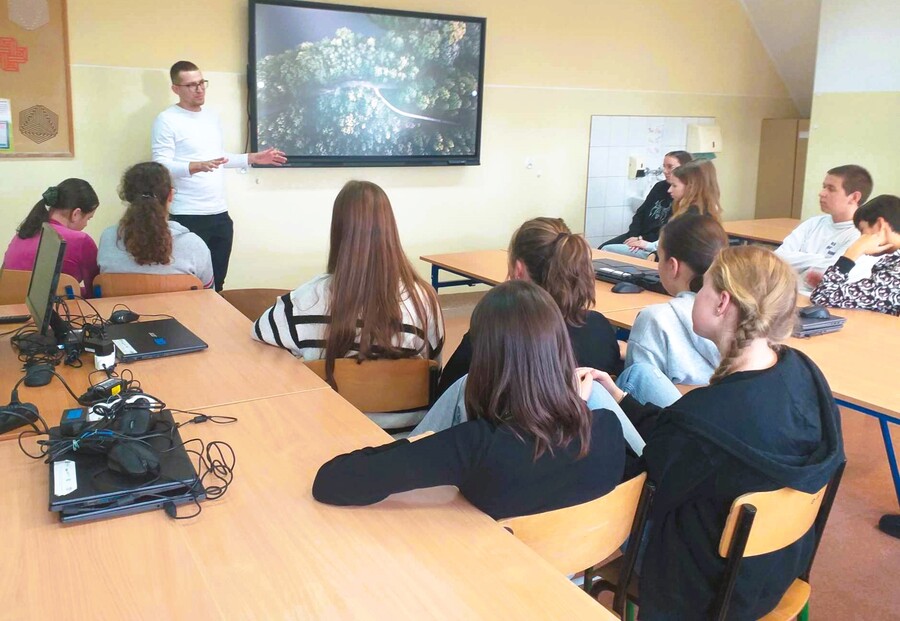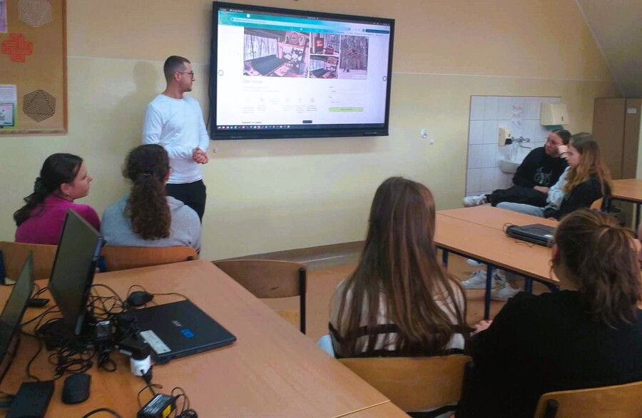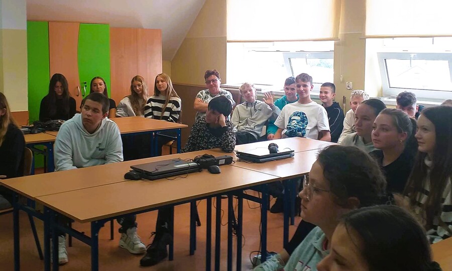 21 października klas ósmych uczestniczyli w spotkaniu z mikroprzedsiębiorcą - panem Dominikiem Łyczko, który świadczy usługi programistyczne dla podmiotów gospodarczych z sektora IT, działających na rynku krajowym jak i na rynkach międzynarodowych. Obecnie współpracuje z firmą Slowop.