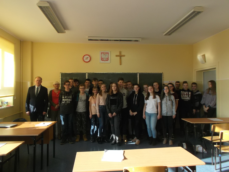30 stycznia 2019r. ósmoklasiści spotkali się z wójtem Gminy Trzcinica p. Grzegorzem Hadzikiem. Spotkanie odbyło się w ramach lekcji wiedzy o społeczeństwie i dotyczyło zadań samorządu terytorialnego. Uczestnicy mieli okazję utrwalić sobie wiedzę nt. samorządu gminnego, a także porozmawiać z wójtem o bieżących sprawach Gminy Trzcinica.