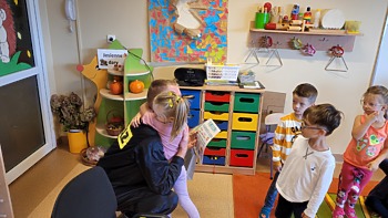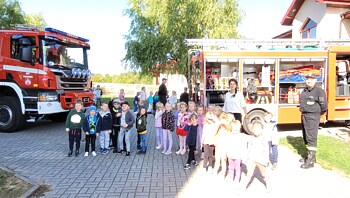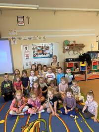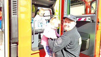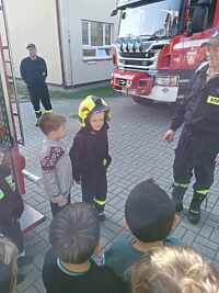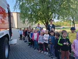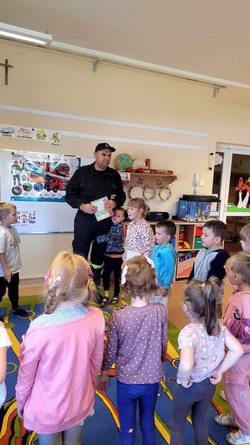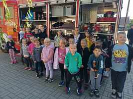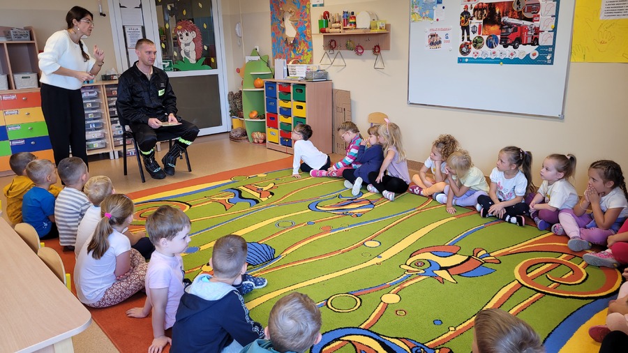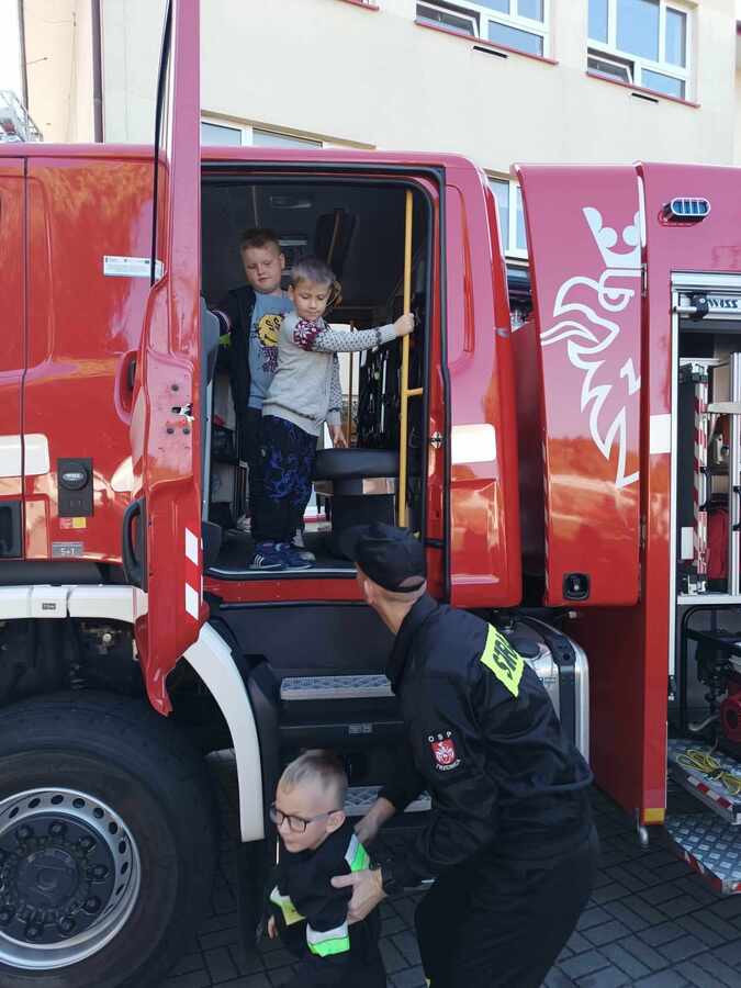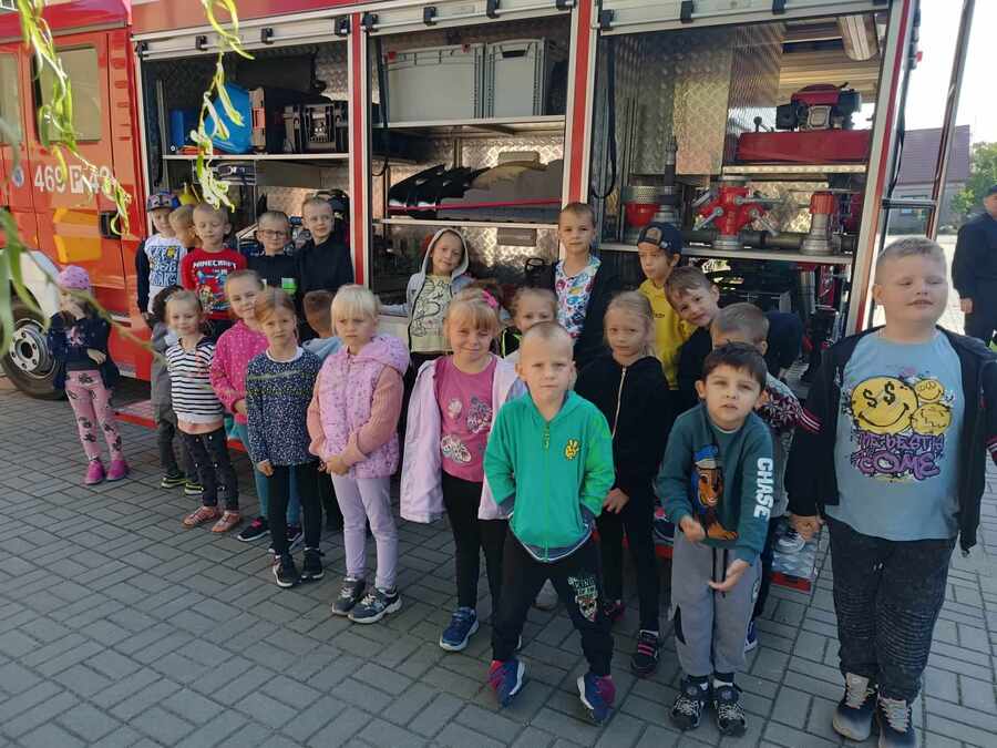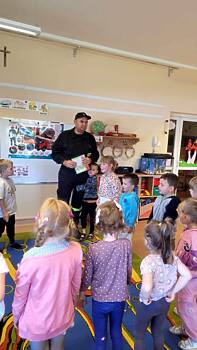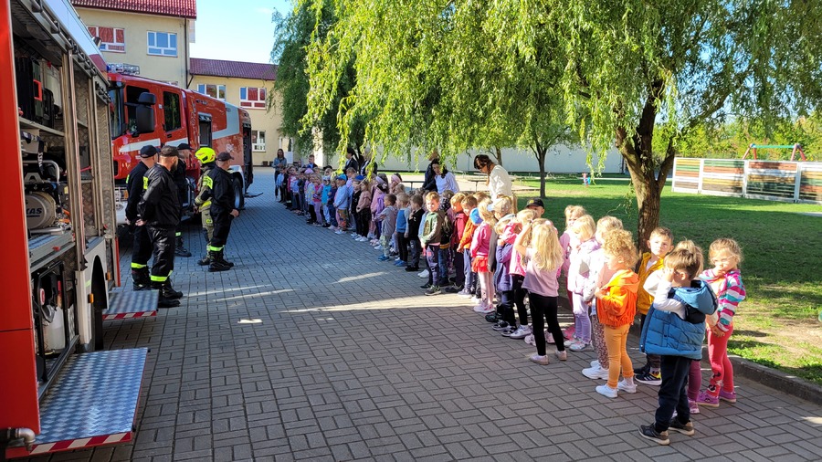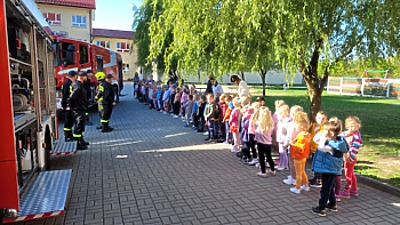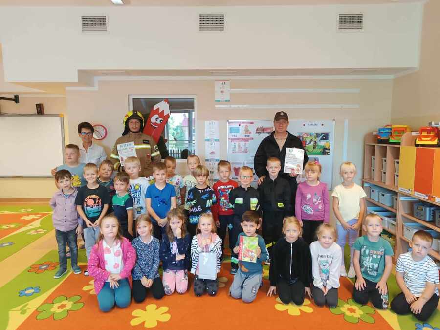 25 września przedszkolaki uczestniczyły w niezwykłym spotkaniu ze strażakami. Wśród dzieci zagościli miejscowi bohaterowie, którym nie straszne niebezpieczeństwo: Zbigniew Grześniak, Łukasz Prochotta, Damian Zimoch, Piotr Szpunar i Rafał Mąka. Odwiedziny strażaków były dobrą lekcją, dzięki której dzieci dowiedziały się na czym tak naprawdę polega ich służba. Odważni na co dzień strażacy rozpoczęli spotkanie czytaniem bajek związanych z tematyką ich działalności. Największą atrakcją dla przedszkolaków było zwiedzanie wozów strażackich, które wraz z gośćmi pojawiły się na tutejszym parkingu. Z zaciekawieniem oglądali sprzęt strażacki wykorzystywany podczas akcji pożarniczych i ratunkowych. Przedszkolaki obdarowani słodkościami przez gości długo jeszcze będą wspominały to wydarzenie.