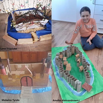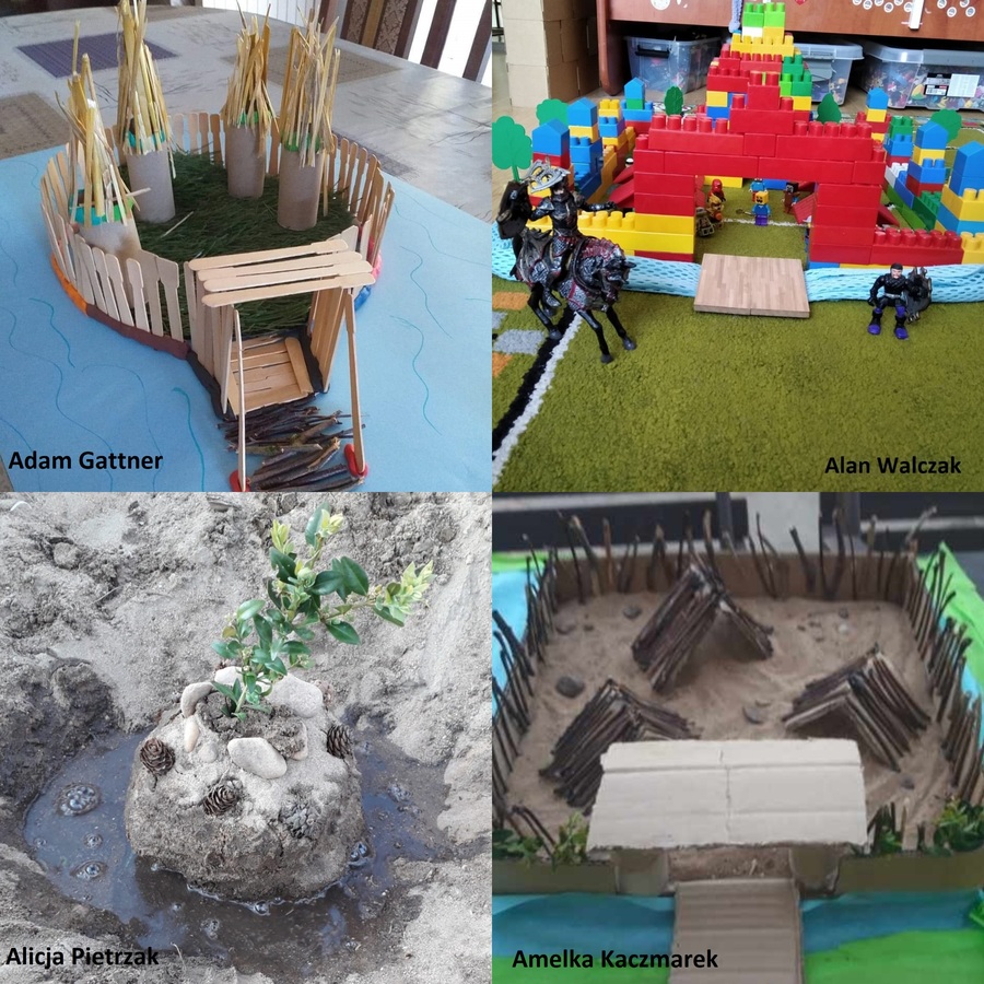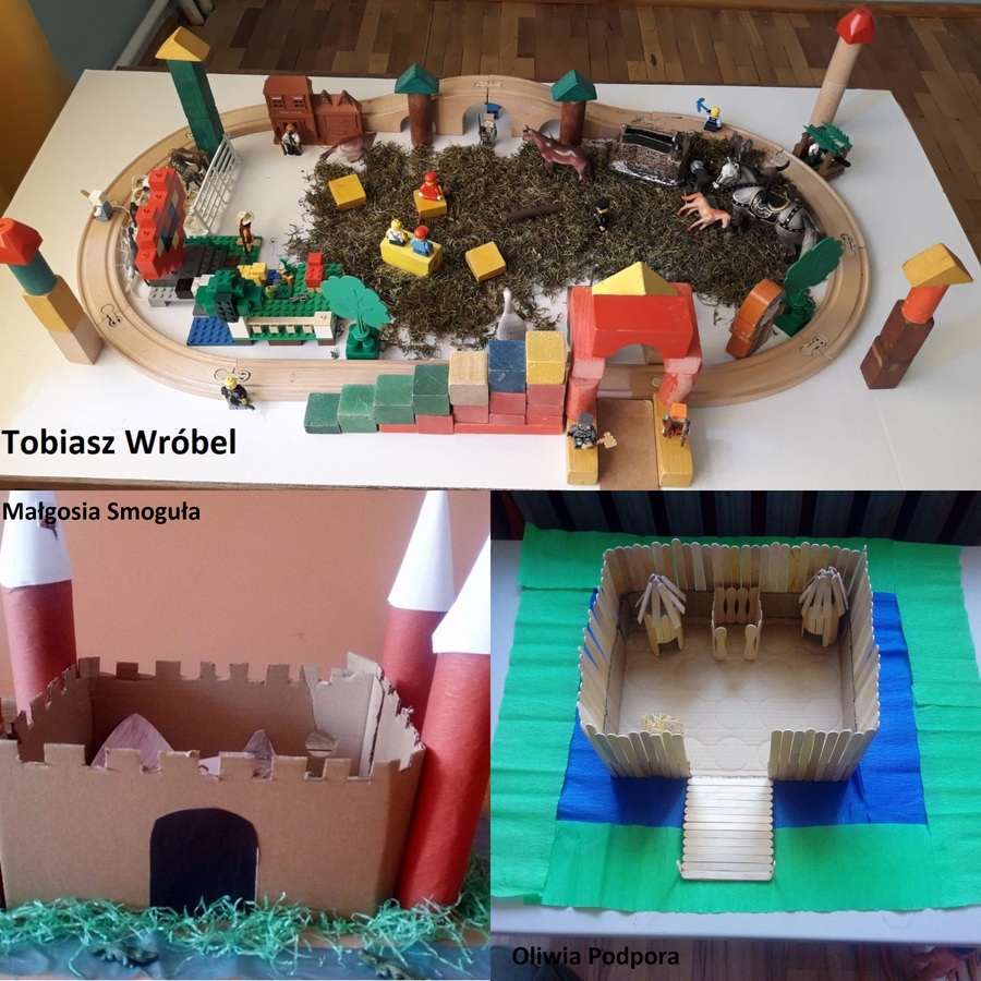 Wśród wielu prac, które młodsi uczniowie wykonują w ramach zdalnego nauczania przedstawiamy średniowieczne grody wykonane przez uczniów kl. II. Pomysły na wykonanie były rozmaite, żaden model się nie powtórzył. Oto efekty ich pracy.