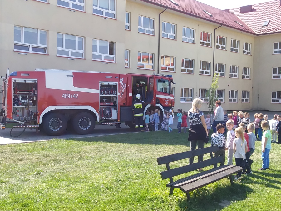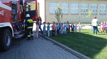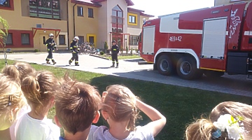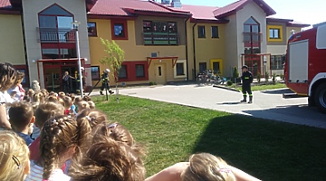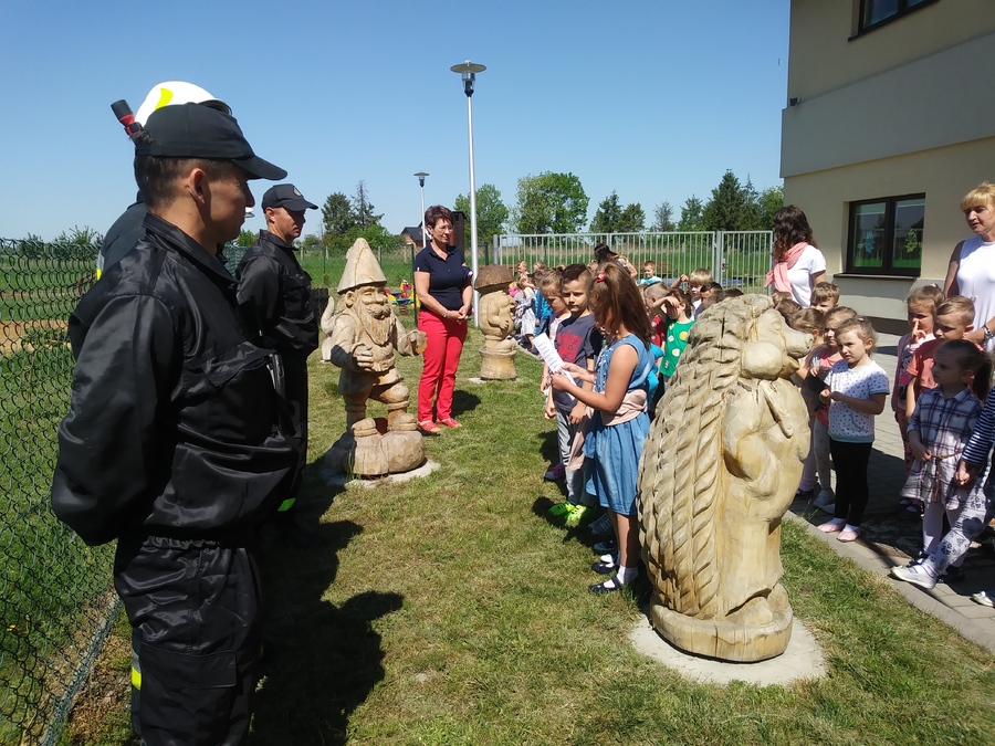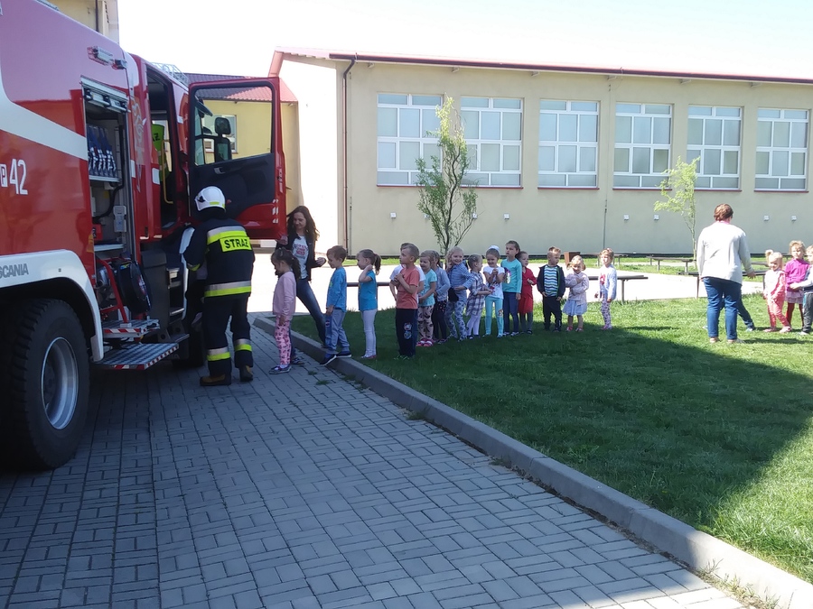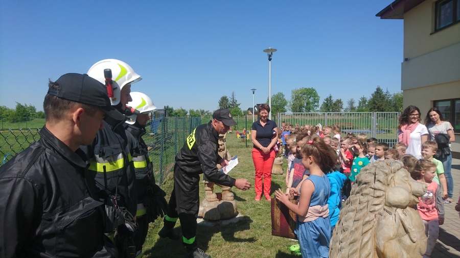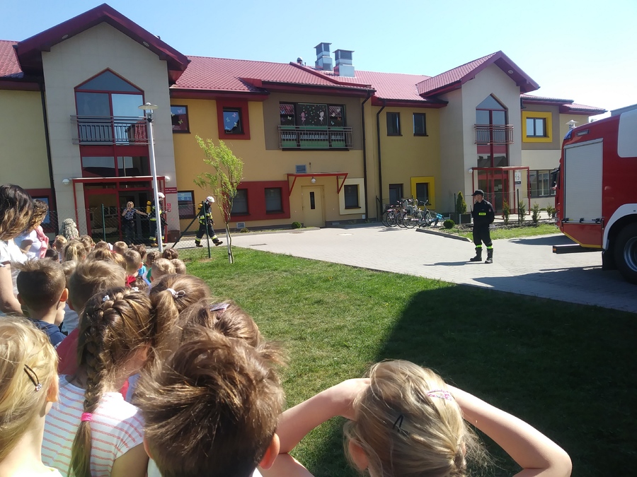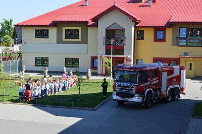 8 maja 2018r. Przedszkole w Trzcinicy odwiedzili strażacy z OSP w Trzcinicy. Spotkanie miało na celu przypomnienie roli strażaka w obliczu zagrożenia oraz próby alarmu ewakuacji. Tym razem spotkanie było tajemnicą, więc nauczyciele mogli zaobserwować zachowanie swoich podopiecznych. Dzieci bez żadnych pytań i paniki ustawiły się w wyznaczonym miejscu. Pod opieką nauczycieli i personelu przedszkola opuściły budynek. Sprawnie ustawiły się na zbiórce i obserwowały wejście strażaków do obiektu przedszkola. Gdy strażacy nadali komunikat o braku zagrożenia i wyszli z budynku, dzieci nagrodziły ich gromkimi brawami. W dalszej części spotkania druh Zbigniew Grześniak przekazał dzieciom najważniejsze zasady, które trzeba znać dla własnego i innych bezpieczeństwa. Dzieci obejrzały wozy strażackie, ich wyposażenie oraz sprzęt niezbędny do ratowania życia podczas pożaru czy wypadku. Spotkanie zakończyło się pokazem siły strumienia wody.