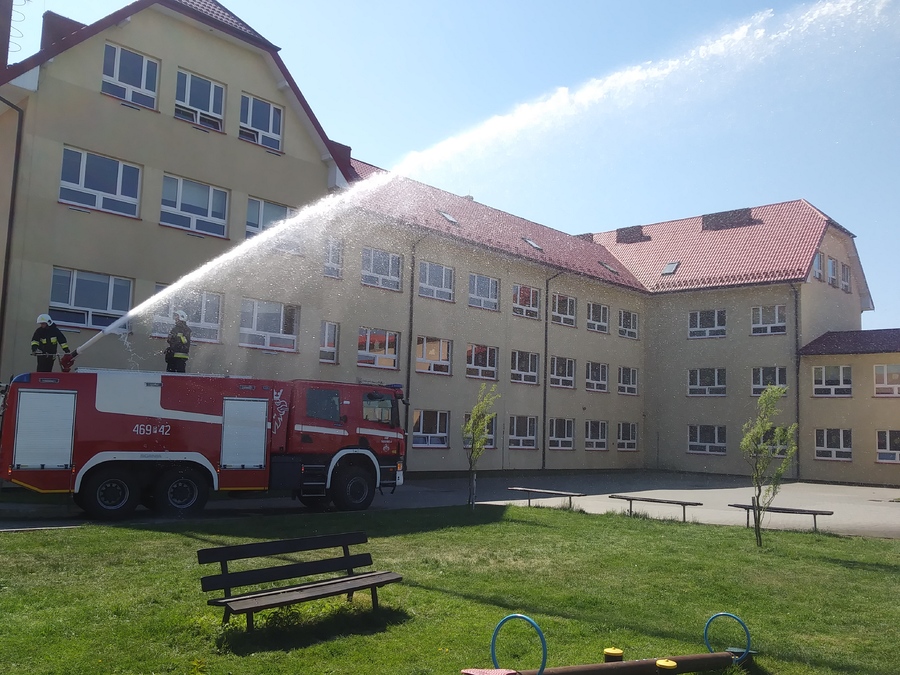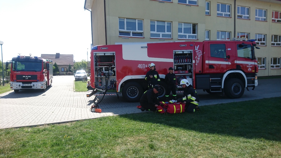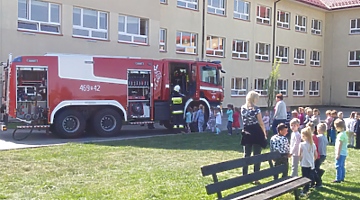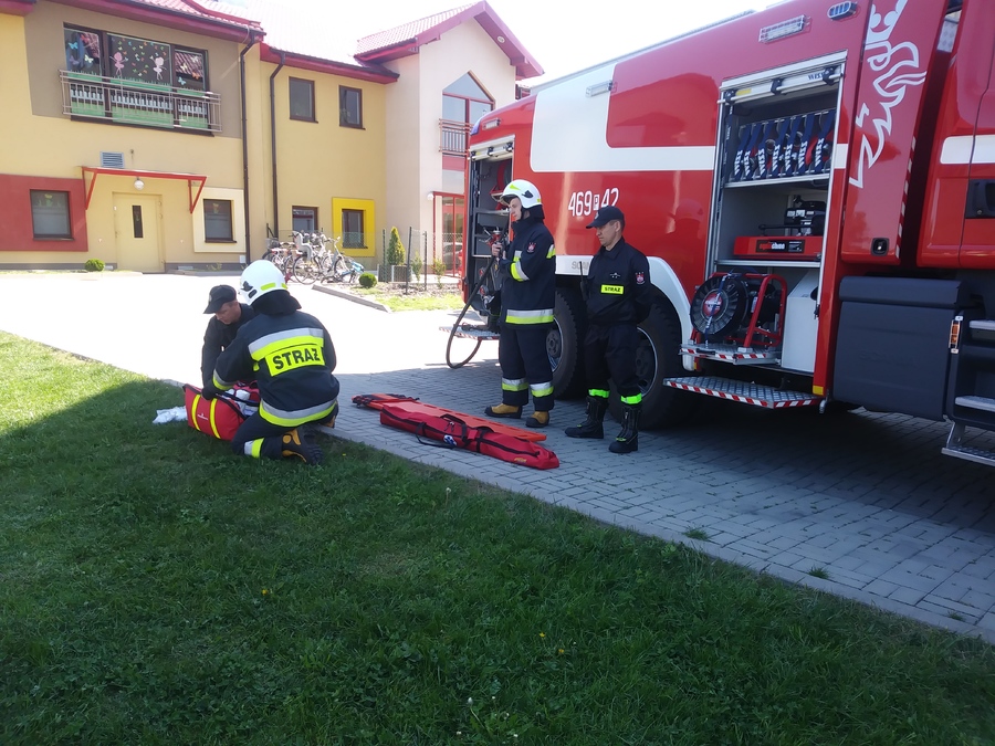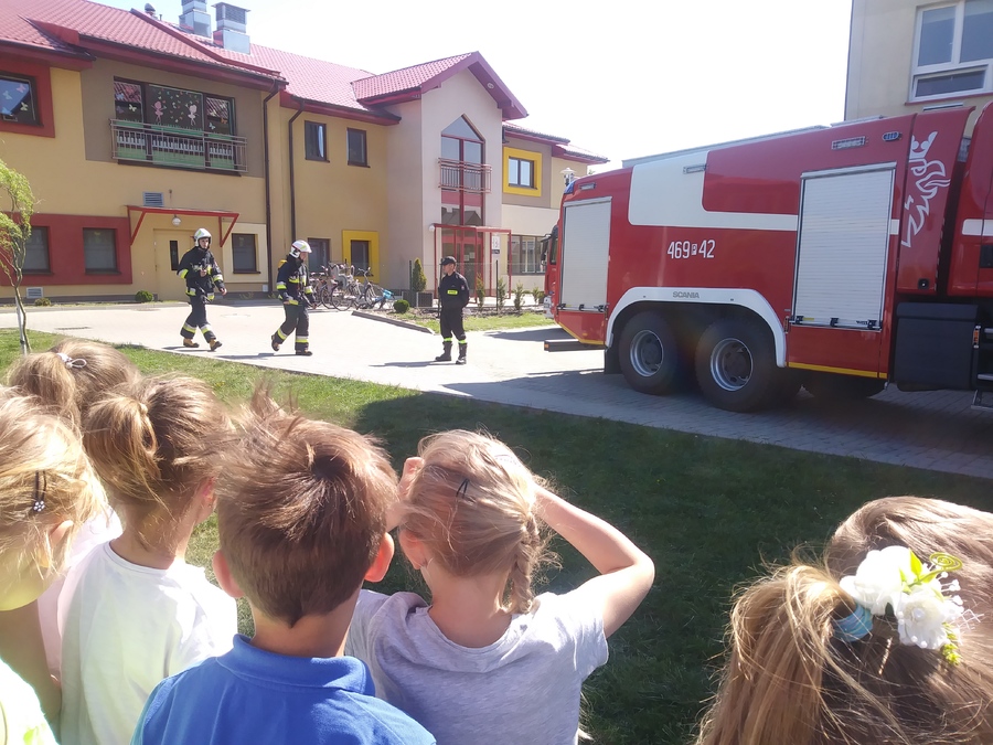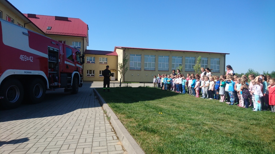 8 maja 2018r. Przedszkole w Trzcinicy odwiedzili strażacy z OSP w Trzcinicy. Spotkanie miało na celu przypomnienie roli strażaka w obliczu zagrożenia oraz próby alarmu ewakuacji. Tym razem spotkanie było tajemnicą, więc nauczyciele mogli zaobserwować zachowanie swoich podopiecznych. Dzieci bez żadnych pytań i paniki ustawiły się w wyznaczonym miejscu. Pod opieką nauczycieli i personelu przedszkola opuściły budynek. Sprawnie ustawiły się na zbiórce i obserwowały wejście strażaków do obiektu przedszkola. Gdy strażacy nadali komunikat o braku zagrożenia i wyszli z budynku, dzieci nagrodziły ich gromkimi brawami. W dalszej części spotkania druh Zbigniew Grześniak przekazał dzieciom najważniejsze zasady, które trzeba znać dla własnego i innych bezpieczeństwa. Dzieci obejrzały wozy strażackie, ich wyposażenie oraz sprzęt niezbędny do ratowania życia podczas pożaru czy wypadku. Spotkanie zakończyło się pokazem siły strumienia wody.