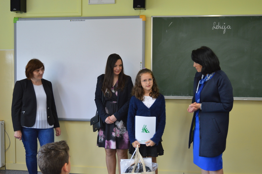 02 czerwca 2022r. do naszej szkoły przyjechały panie: Alicja Śniegocka – Wicestarosta Powiatu Kępińskiego, Aneta Rabiega – kierownik Placówki Terenowej KRUS w Kępnie, Sylwia Kwaśniewska – koordynator konkursu, aby wręczyć nagrodę.