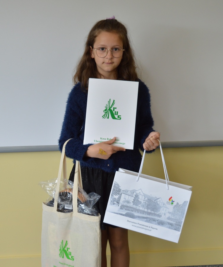 Nagrodę za zajęcie II miejsca w etapie regionalnym konkursu w kategorii kl. 0-III otrzymała Emilia Durlej uczennica kl. IIIb.