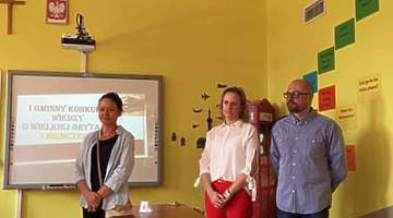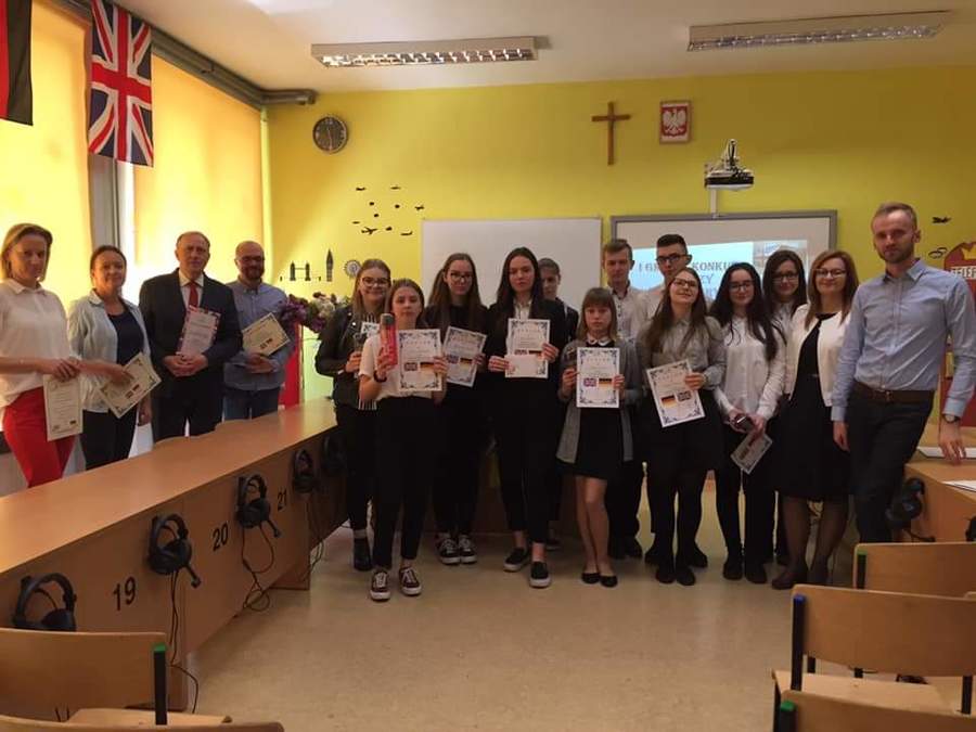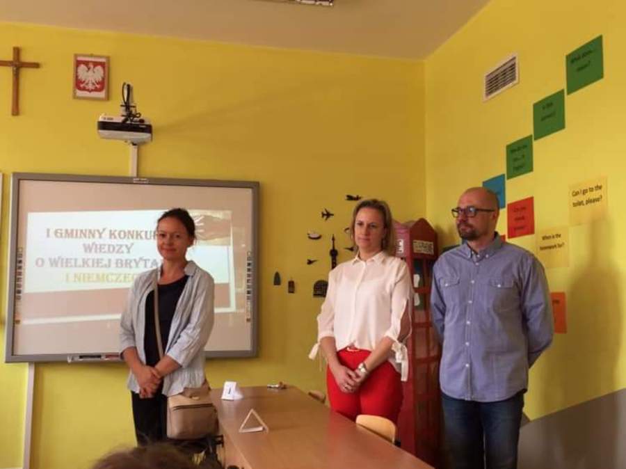 08 maja 2019r. sześcioro uczniów naszej szkoły z klas III gimnazjum wzięło udział w I Gminnym Konkursie Wiedzy o Wielkiej Brytanii i Niemczech w Laskach. Uczniowie rozwiązywali test złożony z 60 pytań. W naszej drużynie znaleźli się: Julia Gatner, Julia Jokiel, Milena Rosielewska, Maciej Stodółka, Wioletta Wagner i Miłosz Żurawa. Wszyscy wykazali się dużą wiedzą na temat państw, których dotyczył konkurs. Konkurs zakończył się podwójnym sukcesem: Miłosz Żurawa zajął II miejsce, a Julia Gatner zajęła III miejsce. Gratulujemy!