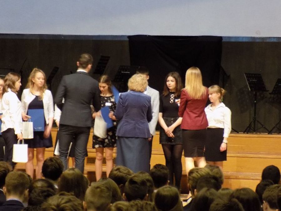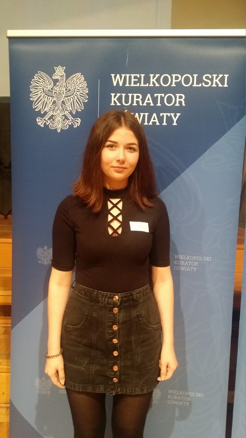 16 kwietnia 2018r. w Poznańskiej Ogólnokształcącej Szkole Muzycznej II st. im. Mieczysława Karłowicza w Poznaniu odbyła się uroczystość wręczenia zaświadczeń i nagród laureatom konkursów przedmiotowych dla uczniów gimnazjów województwa wielkopolskiego w roku szkolnym 2017/2018. Aktu wręczenia dokonał Wielkopolski Kurator Oświaty pani Elżbieta Leszczyńska. W spotkaniu tym uczestniczyła uczennica gimnazjum w Trzcinicy Julita Krowiarz wraz z nauczycielem biologii mgr Grażyną Kłoczaniuk. Uczennica została laureatem Wojewódzkiego Konkursu Biologicznego. Dzięki temu została zwolniona z zakresu przedmioty przyrodnicze części matematyczno-przyrodniczej egzaminu gimnazjalnego i otrzymała maksymalną liczbę punktów z tego zakresu. Julita przygodę z biologią rozpoczęła w klasie pierwszej gimnazjum. W klasie trzeciej z łatwością przebrnęła przez poszczególne szczeble eliminacji tj. etap szkolny i etap rejonowy. Julita jest również finalistką Wojewódzkiego Konkursu z Chemii i Fizyki. Uczennica swoją przyszłość wiąże z przedmiotami przyrodniczymi. Zamierza kontynuować naukę w liceum ogólnokształcącym we Wrocławiu a w przyszłości podjąć studia medyczne.