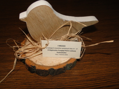 7 kwietnia 2016r. uczniowie Szkoły Podstawowej w Trzcinicy wzięli udział w VI Regionalnym Przeglądzie Pieśni Ludowej „Kukułeczka” w Tulcach. Przegląd ten organizowany jest corocznie przez Stowarzyszenie Sympatyków Kultury Ludowej „Otwórz się na folklor” z Poznania we współpracy z Zespołem Szkół w Tulcach. Oprócz konkursowych prezentacji, uczestnicy konkursu biorą udziału w warsztatach manualnych o charakterze ludowym, jak również wspólnie bawią się, tańczą i śpiewają, ucząc się jednocześnie naszych wielkopolskich tradycji. W tegorocznych zmaganiach konkursowych, w kategorii solo, Julia Jokiel (uczennica klasy VI) zajęła II miejsce. Julię przygotowała pani Agnieszka Podejma-Wróblewska. W kategorii zespół I miejsce i „Kukułeczkę” zdobył zespół przygotowany przez panią Renatę Adamską. Zespół tworzyli uczniowie klas IV-VI, będący również członkami szkolnego chóru. Byli to: Julia Jokiel, Andżelika Kaczmarzyk, Julia Kardaś, Kinga Krzyształowicz, Maja Krzyształowicz, Julia Micharczyk, Wiktoria Nowak, Natalia Pawlik, Izabela Przybylska, Andżelika Sobik, Emilia Warzecha, Alicja Zimoch, Denis Gatner, Kacper Mańka, Mateusz Pawlik.