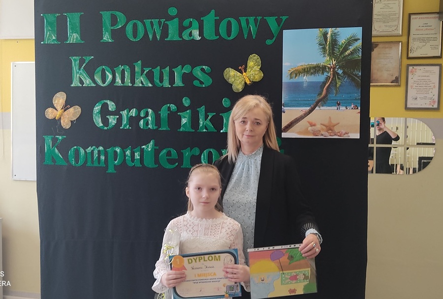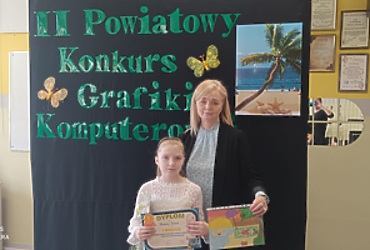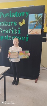 Naszą szkołę reprezentowała uczennica klasy trzeciej Wiktoria Kulak, która wykazała się dużym smakiem plastycznym oraz doskonałą umiejętnością pracy z edytorem graficznym Paint i zdobyła I miejsce. Gratulujemy!
