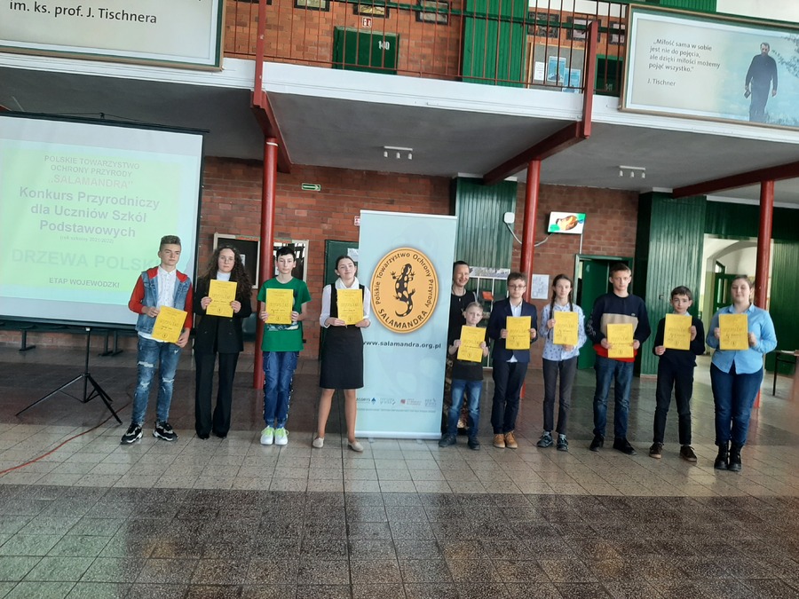 2 kwietnia 2022r. w Zespole Szkół Ogólnokształcących nr 4 w Poznaniu odbył się etap wojewódzki Konkursu Przyrodniczego pt. „Drzewa Polski” organizowanego przez Polskie Towarzystwo Ochrony Przyrody „Salamandra”. Wśród uczestników etapu wojewódzkiego znaleźli się Nikola Nowak i Piotr Tyra – uczniowie Szkoły Podstawowej w Trzcinicy. Etap wojewódzki składał się z trzech części: testu, finału i ścisłego finału. W wyniku testu wyłoniono dziesięciu najlepszych dendrologów. Wśród nich znaleźli się obydwaj reprezentanci z Trzcinicy, w tym Nikola z najwyższym wynikiem. Finaliści, w ustnych zmaganiach musieli wykazać się umiejętnością rozpoznawania drzew po liściach i owocach, zarówno przedstawionych na zdjęciach jak i okazach zielnikowych. Trójka uczniów, która zdobyła najwięcej punktów zakwalifikowała się do ścisłego finału. Jedną z tych osób była Nikola, która po zaciętej walce zajęła pierwsze miejsce. Piotr zajął wysokie ósme miejsce.