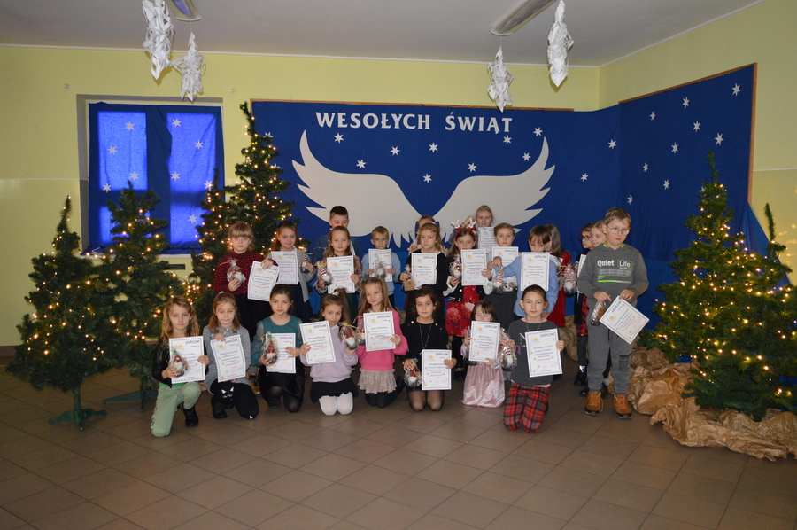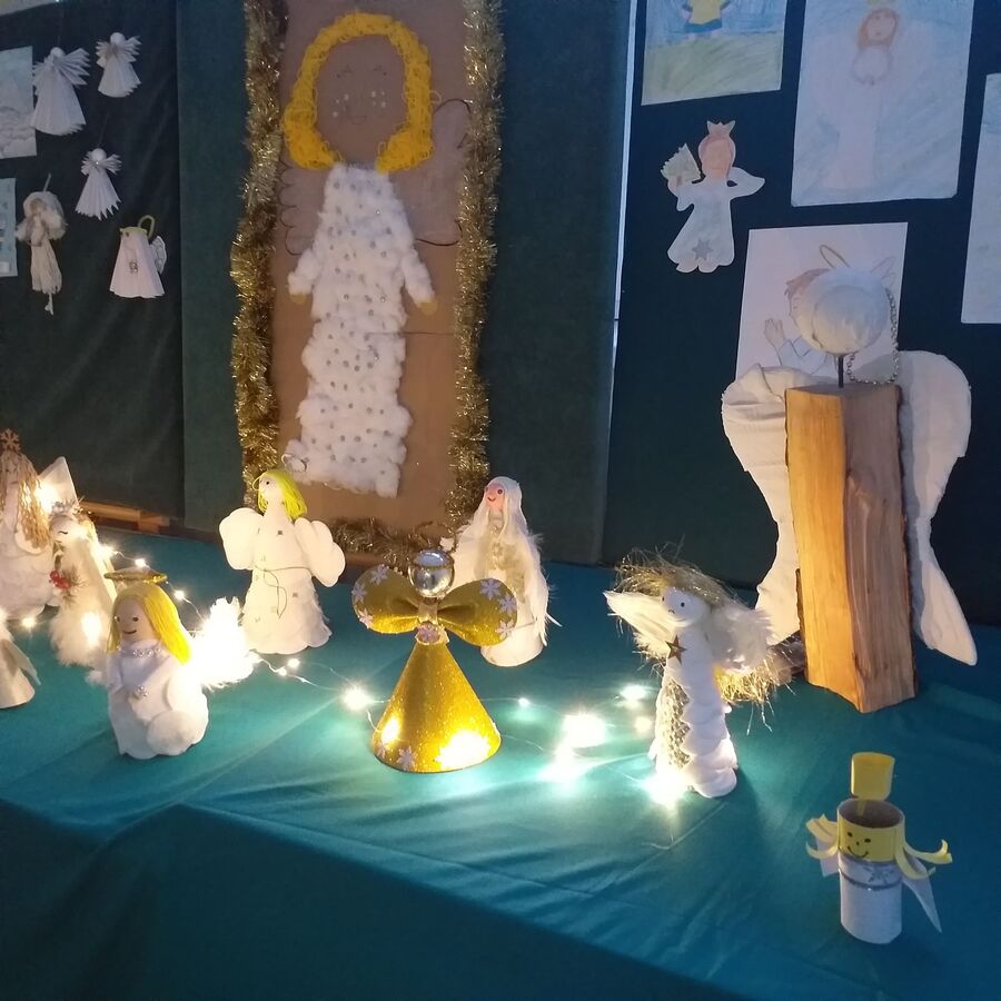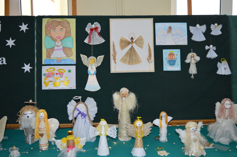 Grudzień obfitował w przedświąteczne przygotowania również w szkole. Ogłoszony świąteczny konkurs na najpiękniejszego Anioła cieszył się bardzo dużym zainteresowaniem. Wzięło w nim udział 53 uczniów. Przepiękne prace wykonane w przeróżnych technikach zagościły na szkolnym korytarzu i stworzyły wyjątkowy, świąteczny klimat.