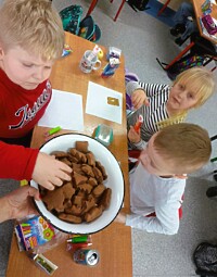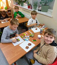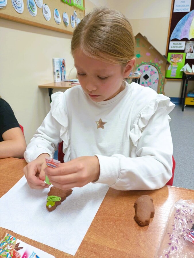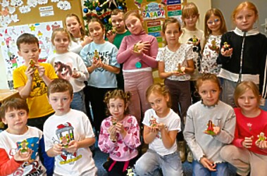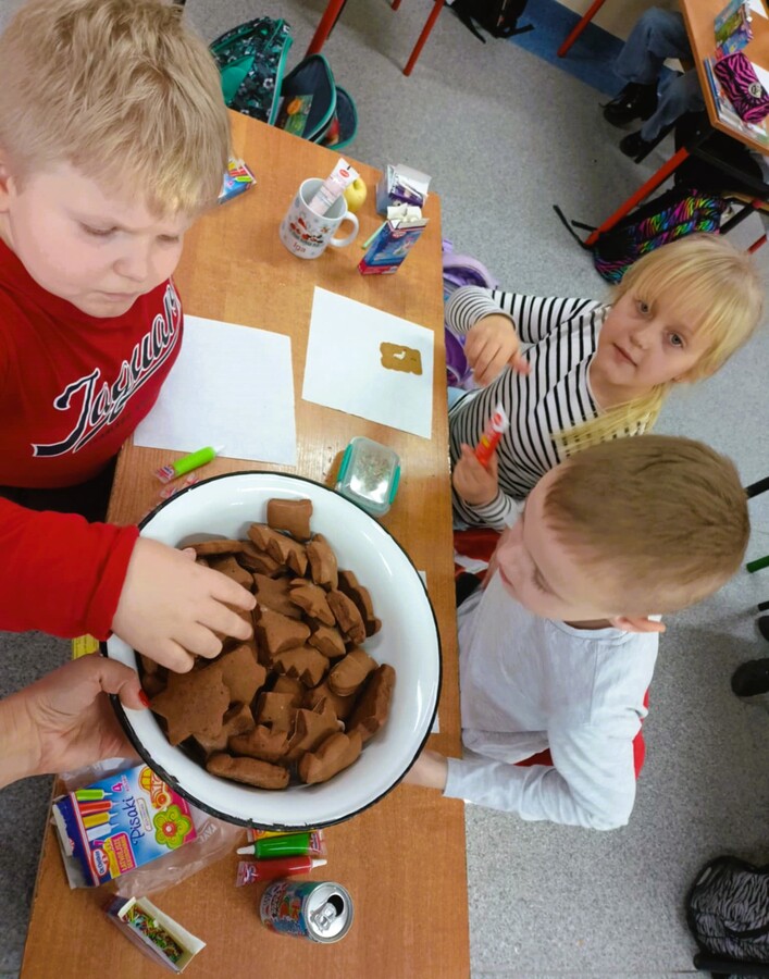 Uczniowie klasy IIb, wyposażeni w różnobarwne posypki oraz jadalne pisaki, samodzielnie ozdobiły świąteczne pierniki, które upiekł ich klasowy kolega Markusa wraz ze swoją mamą. Małe arcydzieła bardzo wszystkim smakowały.