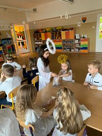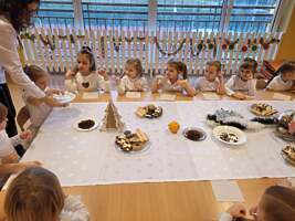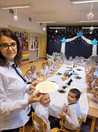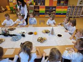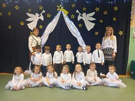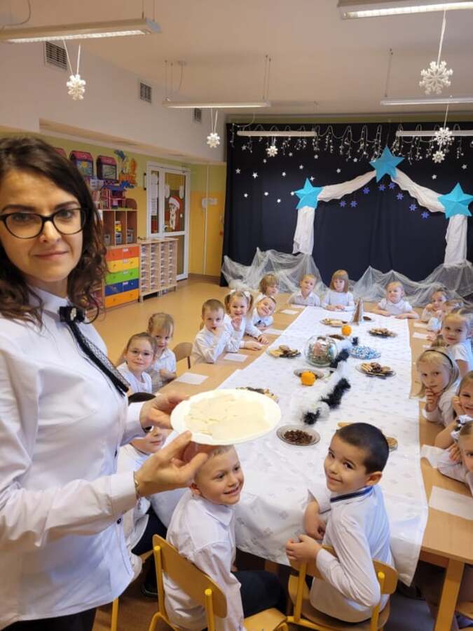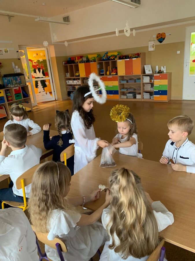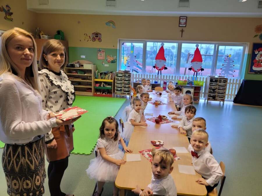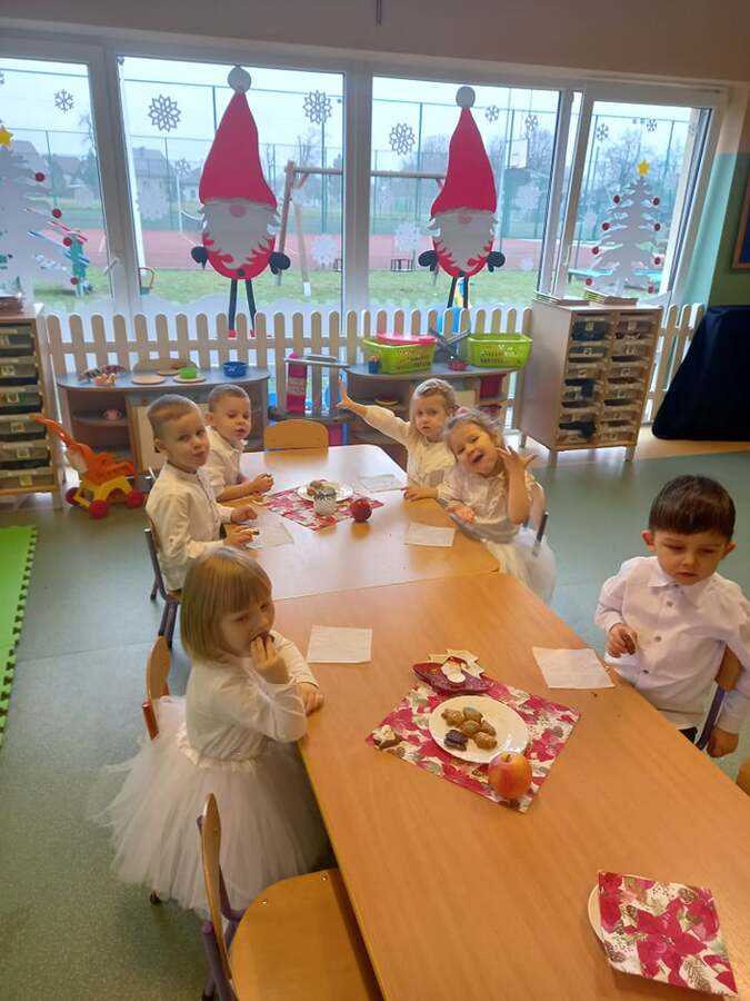 W ostatnim tygodniu przed świętami dobiegły końca przygotowania związane z nauką ról i życzeń, które przedszkolaki przygotowały dla swoich najbliższych. Oprócz pięknie przygotowanych scenariuszy powstały dekoracje, gazetki i kąciki edukacyjne, które stworzyły świąteczny nastrój. W tym to świątecznym nastroju w każdej z sal powstały nagrania dla rodziców i świąteczne upominki a dla dzieci mnóstwo wrażeń przy świątecznym stole. ŻYCZĄC WESOŁYCH ŚWIĄT DZIĘKUJEMY RADZIE RODZICÓW ZA SŁODKI POCZĘSTUNEK.