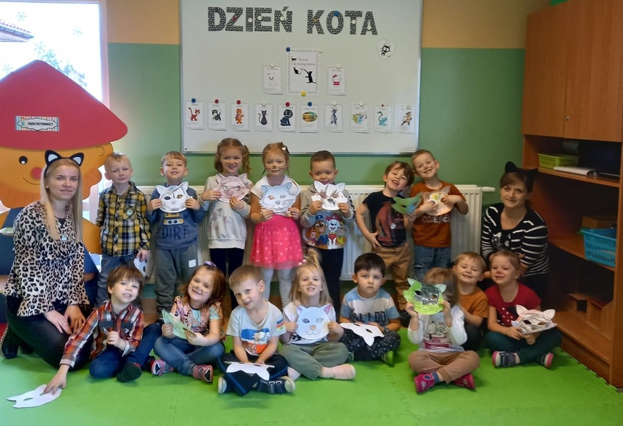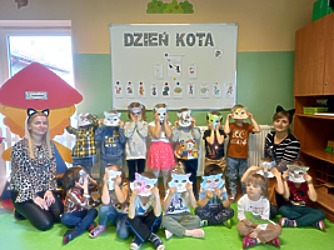 W Światowym Dniu Kota dzieci podczas zajęć poznały rasy i życie tych pięknych zwierząt, wykonywały różne prace plastyczno-techniczne oraz wcielały się w koty. malowały twarze, uczyły się piosenek, rymowanek i zabaw.