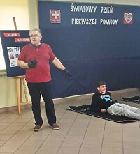 Dziś uczniowie klas II i III wzięli udział w spotkaniu warsztatowym zorganizowanym w ramach obchodów Światowego Dnia Pierwszej Pomocy, który przypadał w sobotę 14 września. Warsztaty przeprowadził pan Zdzisław Mikołajczyk – nauczyciel przedmiotu – edukacja dla bezpieczeństwa.