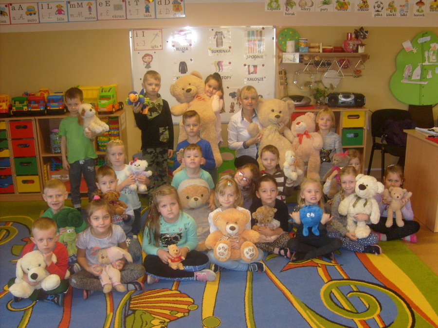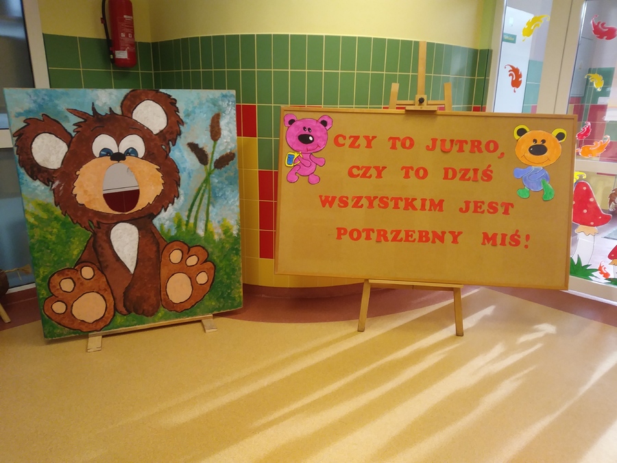„Czy to jutro, czy to dziś wszystkim jest potrzebny MIŚ!” pod takim hasłem dzieci z przedszkola w Trzcinicy świętowały Dzień Pluszowego Misia. W piątek 24 listopada 2017r. w holu przedszkola wszystkich wchodzących witał ogromny miś, z którym można było zrobić sobie zdjęcie. We wszystkich salach każda grupa w wybrany przez siebie sposób urządzała zabawy z tą maskotką. Misie tańczyły z dziećmi, dzieci śpiewały o misiach, powstały misie wypełnione wełną, rysowane, lepione z plasteliny i wycinane z papieru. Misie, które dzieci przyniosły z domu mogły poczuć smak przedszkolnych zabaw, jak i przedszkolnej „pracy”, gdyż były usadzone nawet do przedszkolnych stołów, przy których na co dzień pracują wszystkie przedszkolaki. Ciepło, jakie roztacza ta zabawka pozostało na zawsze w przedszkolu. A historie, które opowiadały dzieci o swoich misiach wystarczyłyby do stworzenia niejednej bajki, której można by słuchać w nieskończoność.