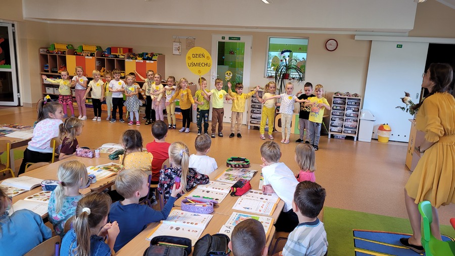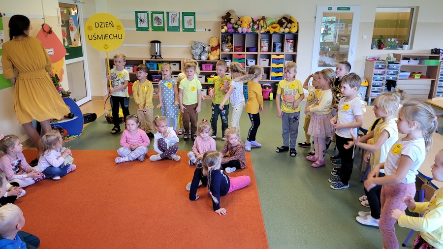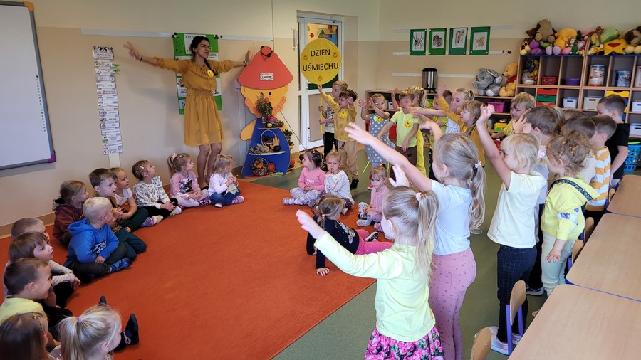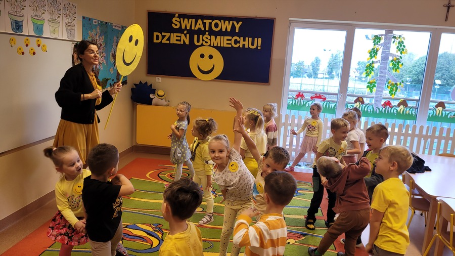 6 października w naszym przedszkolu okazał się wyjątkowo radosny, a to wszystko za sprawą Światowego Dnia Uśmiechu. Tego dnia w grupie „Jeżyków” na dzieci czekało wiele radosnych zabaw i niespodzianek, do których biletem wstępu był przysłowiowy uśmiech od ucha do ucha.