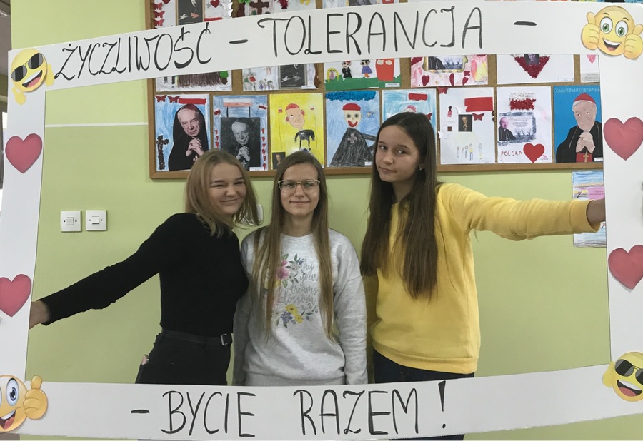 W naszej szkole, w ramach Projektu „ŻYCZLIWOŚĆ-TOLERANCJA-BYCIE RAZEM”, obchodziliśmy Światowy Dzień Życzliwości i Pozdrowień. Na korytarzach zawisły plakaty i przysłowia na temat życzliwości i uśmiechu. Uczniowie obdarowywali się dobrym słowem zrywając karteczki z zawieszonych plakatów. W „fotoramce” pozowali do zdjęć koleżeńskich.