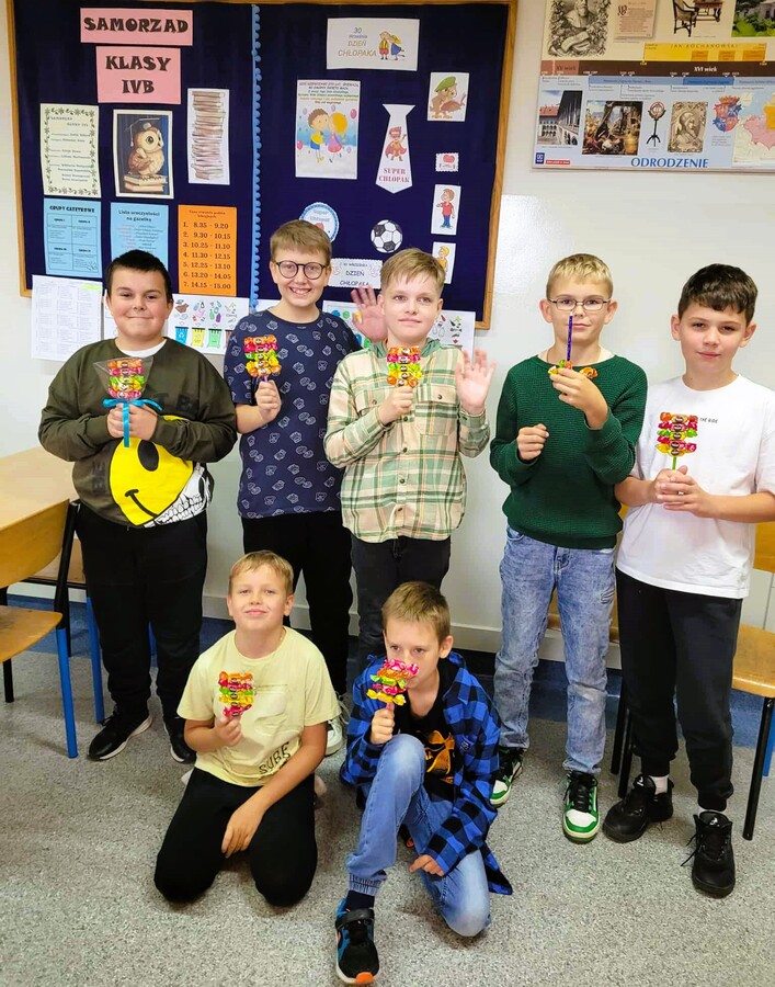 Samorząd Uczniowski przygotował na łączniku foto-budkę, a Rada Rodziców zadbała o słodki upominek dla chłopców z okazji ich święta.
