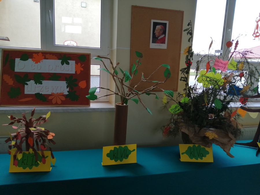 W tegorocznym projekcie nie mogło zabraknąć okolicznościowej ekspozycji. Tym razem utworzyły ją pomysłowo wykonane drzewa z kolorowymi listkami, na których umieszczone były informacje „O co prosi drzewo?”.