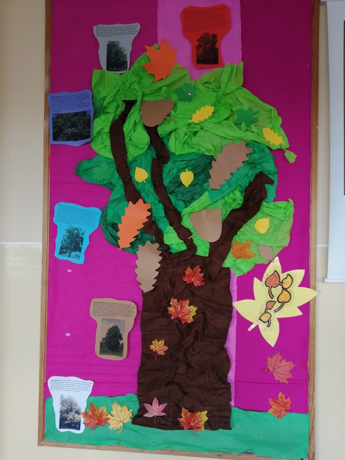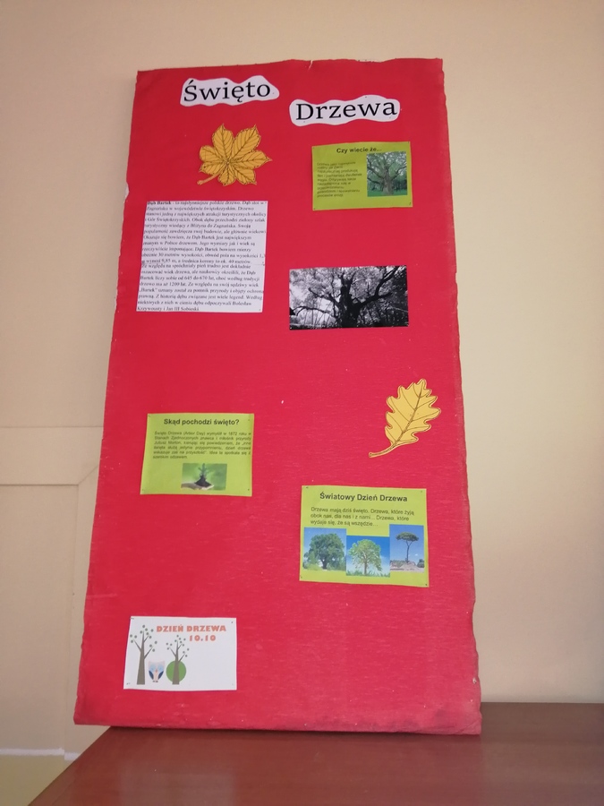 W ramach działań projektowych uczniowie poszczególnych klas wykonali gazetki, których bohaterem było drzewo. Uczniowie klasy IIIa wykonali jesienne kompozycje z liści, klasa II plastyczną plamę w formie drzewa, a uczniowie klas pierwszych malowali jesienne drzewa. Klasa Ib i klasa II poznawała różnorodność przyrodniczą podczas wycieczki do lasu.