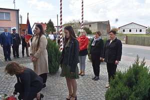 3 maja 2022r. poczet sztandarowy, delegacje uczniów i nauczycieli Zespołu Szkół w Trzcinicy wzięły udział w gminnych obchodach Święta Konstytucji. Przedstawiciele naszej szkolnej społeczności uczestniczyli w uroczystości i złożyli kwiaty pod tablicą pamiątkową.