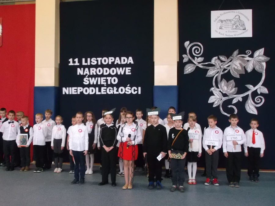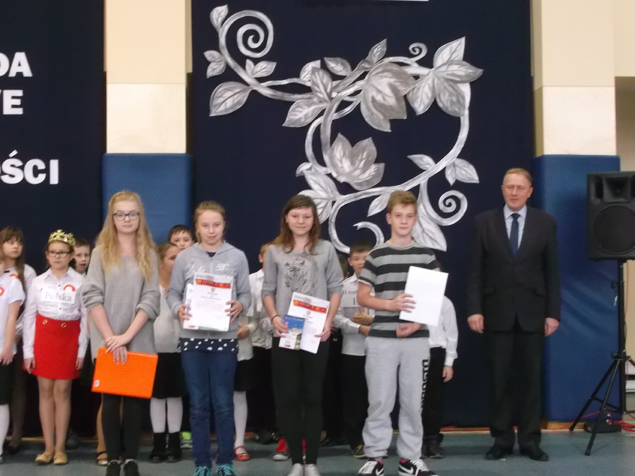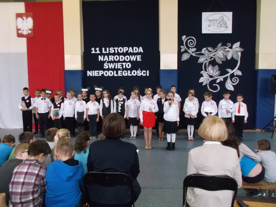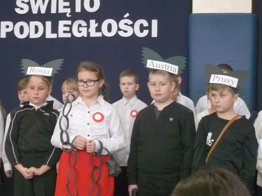 Przedstawienie w wykonaniu uczniów kl. III SPApel z okazji Święta Niepodległości dla uczniów szkoły podstawowej i gimnazjum przygotowali uczniowie klas III szkoły podstawowej pod kierunkiem nauczycielek Grażyny Grześniak i Elżbiety Marciniak.