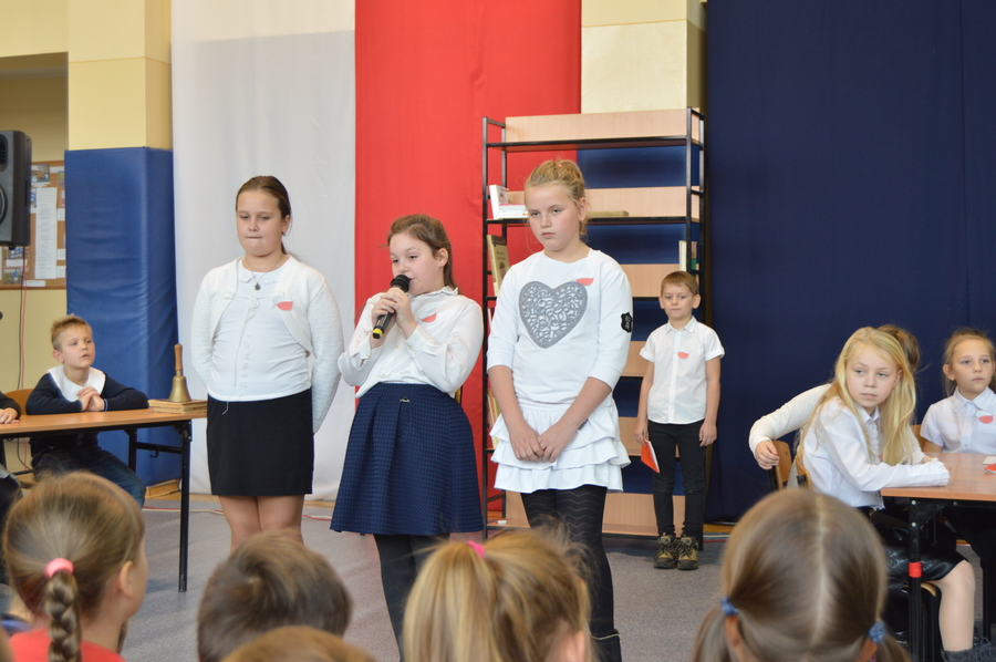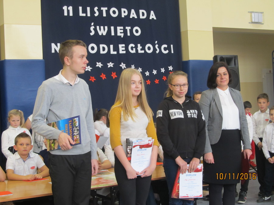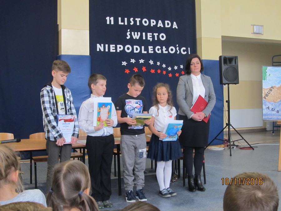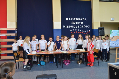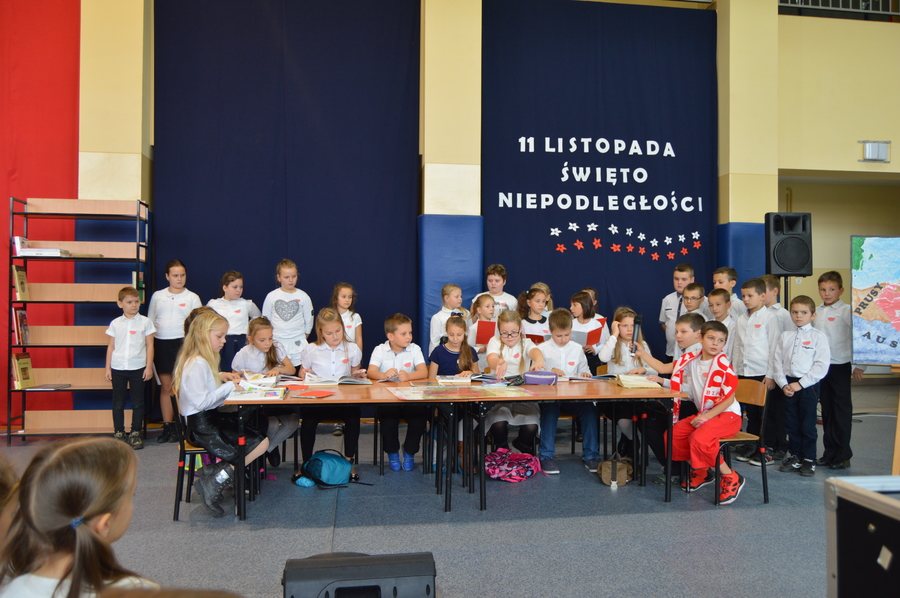 10 listopada 2016r. apel z okazji Narodowego Święta Niepodległości przygotowali uczniowie klas III szkoły podstawowej pod kierunkiem nauczycielek Eweliny Jędrycy i Marii Olejnik.