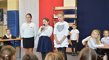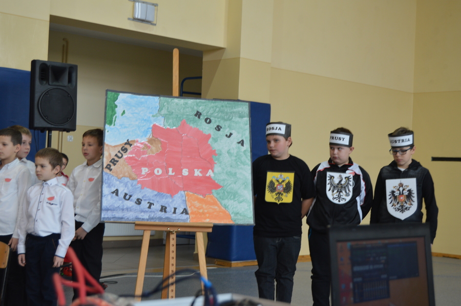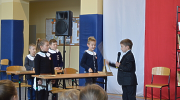 W przystępny sposób przedstawili zgromadzonym historię naszego kraju od czasów rozbiorów, poprzez czas powstań, do zakończenia I wojny światowej i odzyskania przez Polskę w 1918r. niepodległości. Zaprezentowane scenki z życia szkoły (dawniej i dziś) przeplatane były piosenkami i recytacjami.