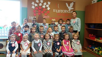 Przedszkolacy dumnie prezentowali barwy narodowe, a tym samym uczcili Święto Niepodległości.
