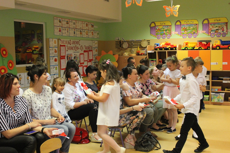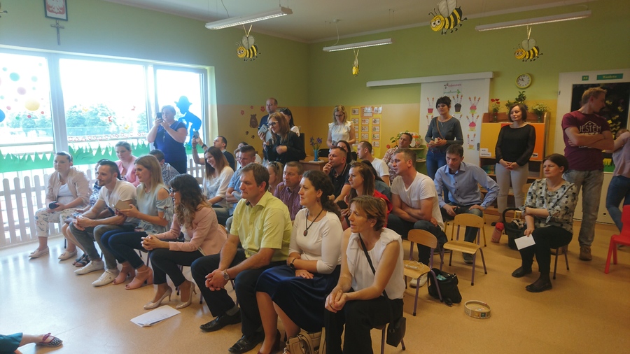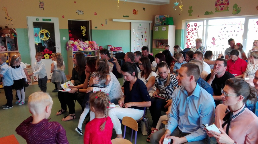 Drugiego dnia taka sama uroczystość odbyła się w grupach „Krasnoludki” i „Jeżyki”. Dzieci przygotowały dla swoich gości wiersze, piosenki i tańce, które bardzo podobały się rodzicom.