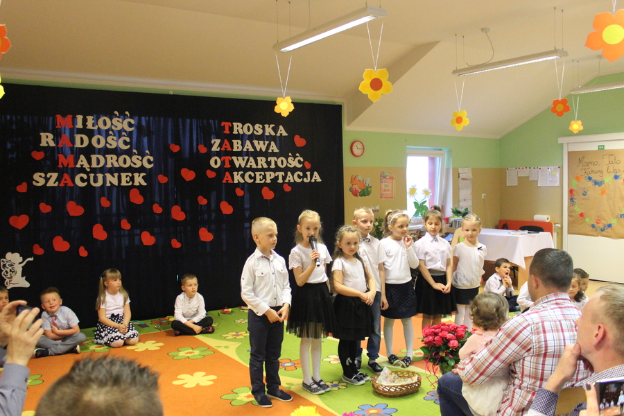 Dnia 23 i 24 maja 2019r. dzieci z przedszkola w Trzcinicy gościły w swoich salach najbliższe im osoby, czyli mamę i tatę. Przygotowały dla nich wiele niespodzianek i tak, jak słowa piosenki „Kochana Mamo, Kochany Tato, co Ci dać? Na instrumentach umiem grać. Wydeklamuje i narysuję Kocham Cię, Kocham Cię!”. Takie właśnie deklaracje znalazły potwierdzenie w przygotowanych przedstawieniach i prezentach dla rodziców. Słowa Kocham Cię, Kochamy Was powtarzane były wielokrotnie i sprawiały, że na dumnych twarzach dorosłych wywoływały jednocześnie radość i łzy wzruszenia. W tych pięknych chwilach dzieciom i rodzicom towarzyszyli również zaproszeni goście: Wójt Gminy Trzcinica pan Grzegorz Hadzik i Sekretarz Gminy Trzcinica pani Renata Ciemny, Dyrektor Zespoły Szkół w Trzcinicy pani Małgorzata Hadzik i Wicedyrektor Zespoły Szkół w Trzcinicy pani Ewa Hetmańczyk. Rada Rodziców zadbała, aby goście spędzili ten czas przy kawie i ciasteczku, a każda mama została obdarowana różą. Wszyscy uczestnicy spotkania spędzili ze sobą miłe chwile, za które dzieci z nauczycielkami serdecznie dziękują.