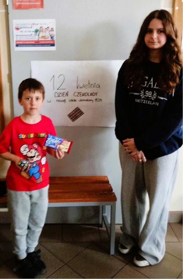 11 kwietnia obchodziliśmy w szkole Międzynarodowy Dzień Czekolady. Tak naprawdę przypada on na 12 kwietnia, ale skoro jest to sobota Samorząd Uczniowski postanowił ogłosić te najsłodsze na świecie obchody już w piątek.