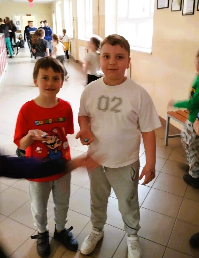 W sumie rozłożono w dziesiątkach miejsc aż 80 czekoladowych przysmaków, a rekordzistą w celnych poszukiwaniach okazał się Kacper Ozimek z kl. Ia, któremu udało się znaleźć aż osiem ukrytych świątecznych jajeczek z pysznej - czekoladowej masy. Jego determinacja została nagrodzona jeszcze większą ilością czekolady.