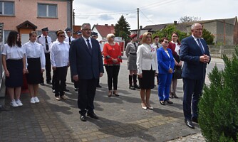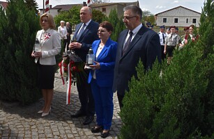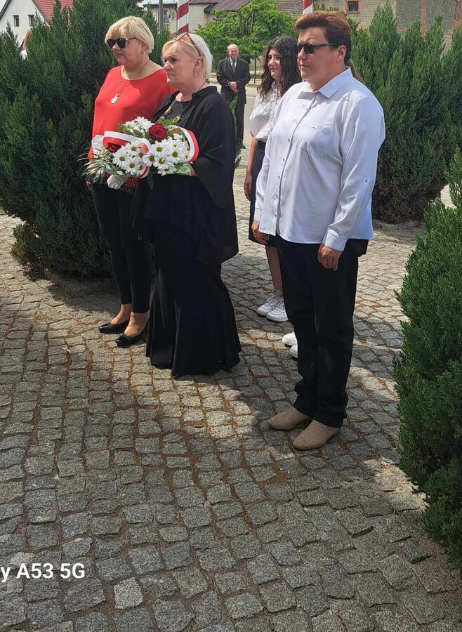 Następnie obchody były kontynuowane przy tablicy pamiątkowej. Tę część rozpoczął Wójt Gminy Trzcinica pan Grzegorz Hadzik witając wszystkich zgromadzonych. Po odśpiewaniu hymnu państwowego, przybyłe na miejsce delegacje złożyły kwiaty i znicze.