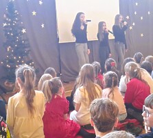 Szkolne kolędowanie rozpoczął Chór NUTKA oraz jego solistki. Potem już wszyscy razem odśpiewywaliśmy kolejne, tradycyjne polskie kolędy, pomiędzy którymi uczniowie przybliżali nam tę tradycję odczytując krótkie teksty związane z kolędowaniem, przygotowane przez panią Alinę Lenort.