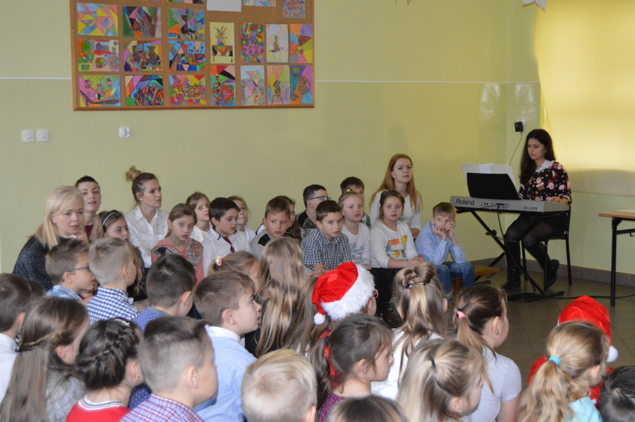 W ostatnim dniu nauki przed przerwą świąteczną uczniowie Zespołu Szkół w Trzcinicy, podtrzymując tradycję szkolną, spotkali się w grupach wiekowych i wspólnie kolędowali.
