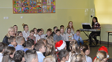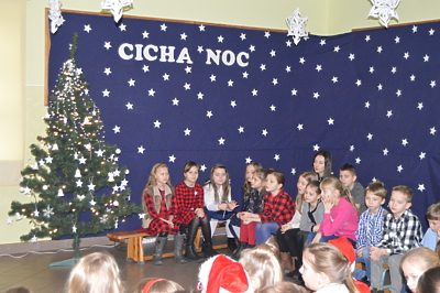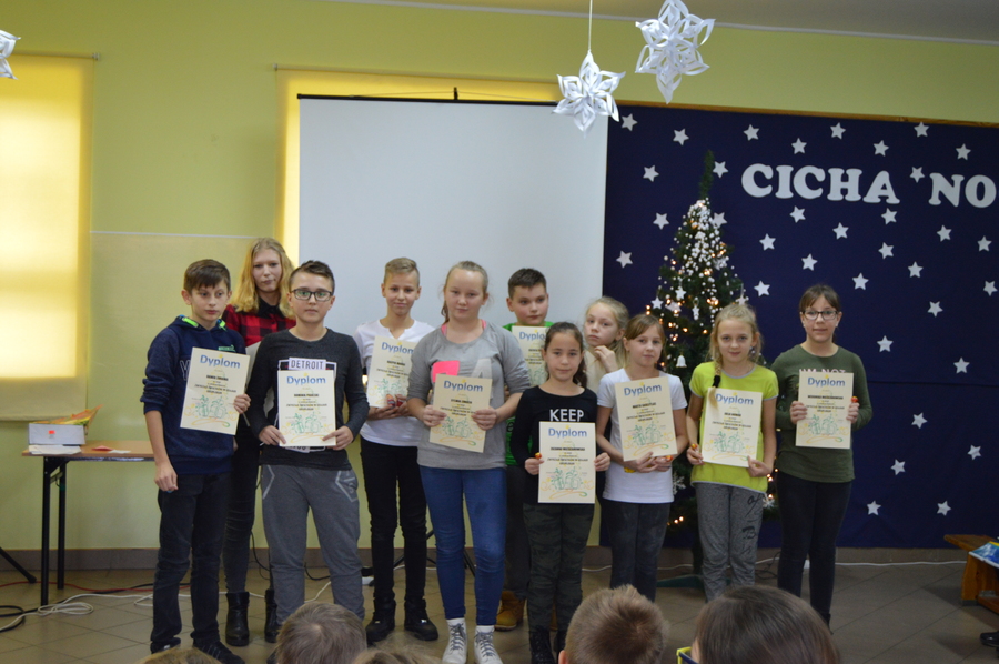 Podczas kolędowania nastąpiło ogłoszenie wyników szkolnego konkursu „Zwyczaje świąteczne w krajach europejskich”, którego organizatorkami były nauczycielki: Ewa Gaze i Jolanta Janicka.