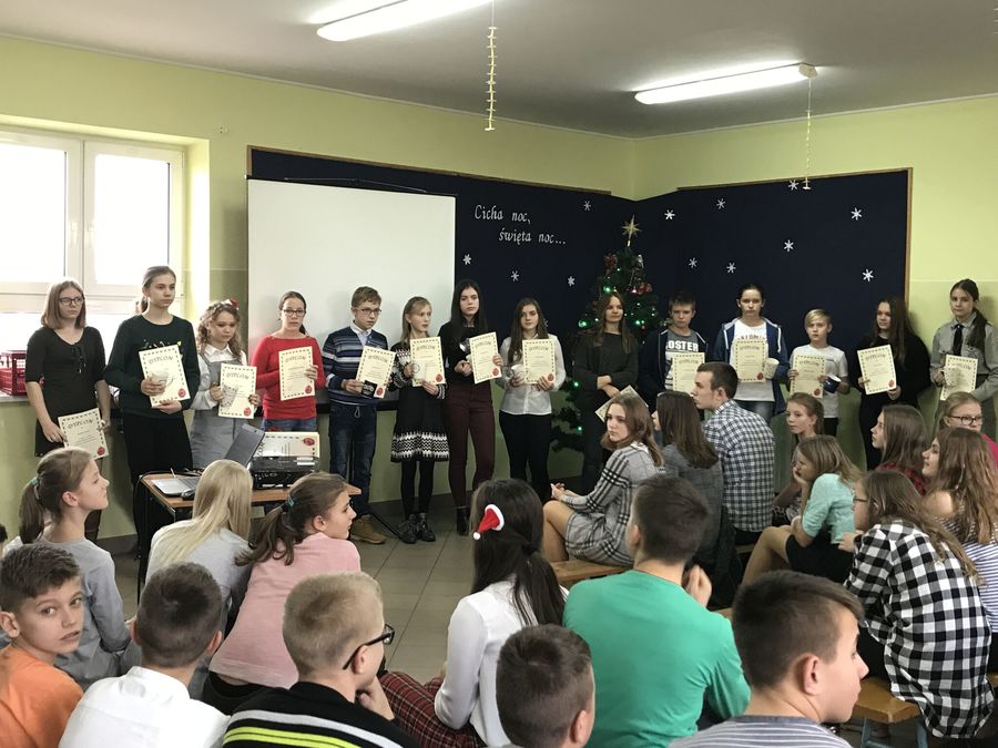 W ostatnim dniu nauki przed przerwą świąteczną uczniowie Zespołu Szkół w Trzcinicy, podtrzymując tradycję szkolną, spotkali się w grupach wiekowych i wspólnie kolędowali. Podczas kolędowania nastąpiło wręczenie nagród i dyplomów uczestnikom Szkolnego Konkursu na „Najpiękniejszy stroik świąteczny”.
