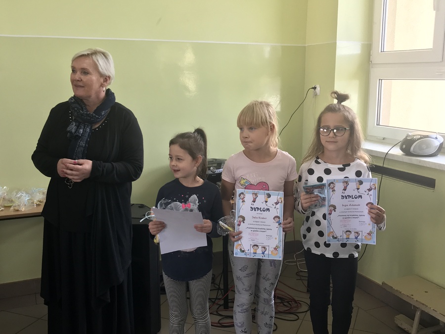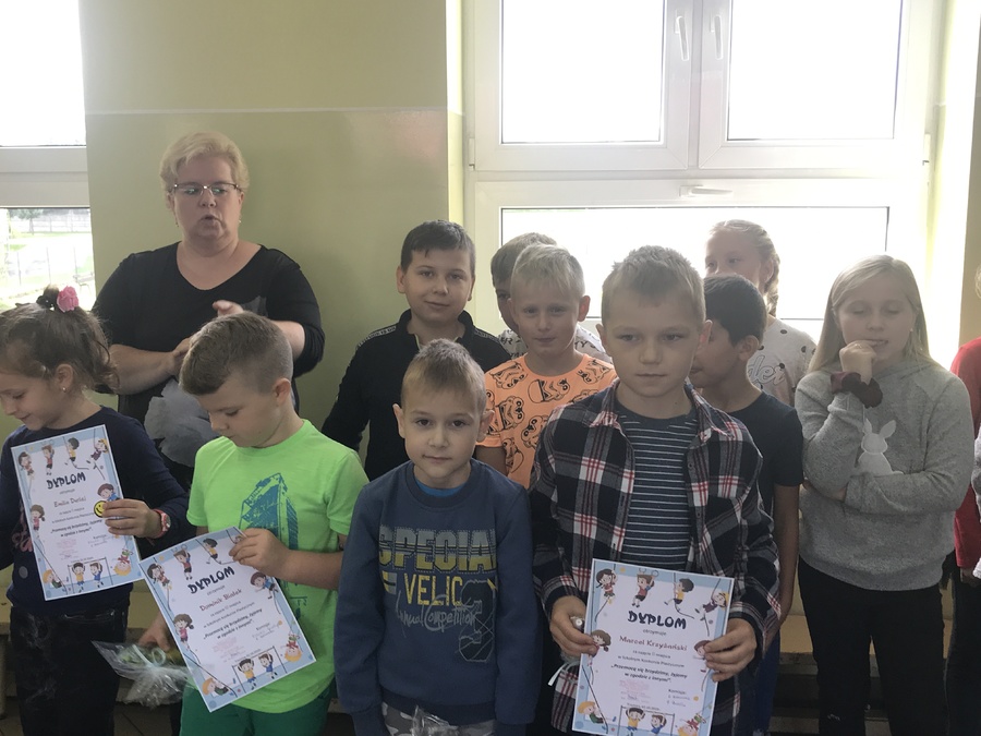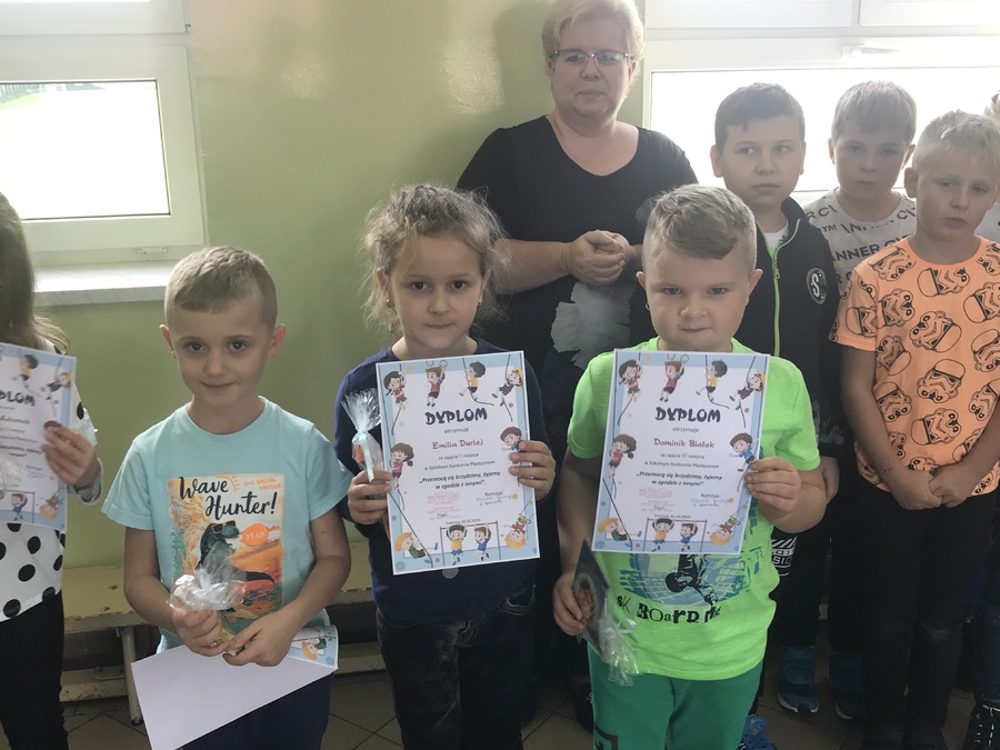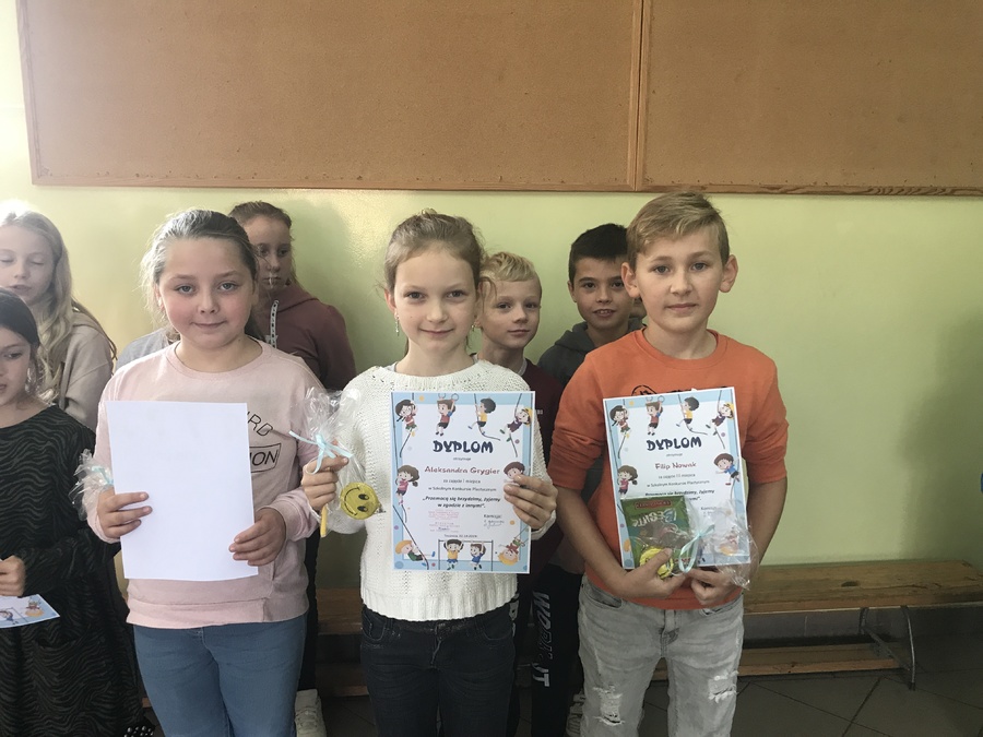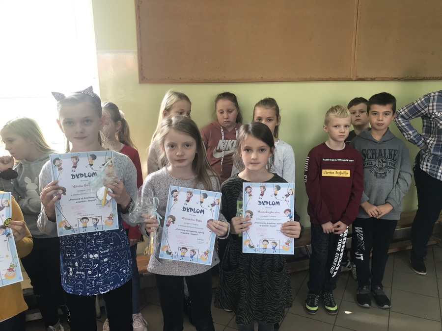 Uczniowie klas I-III wzięli udział w konkursie plastycznym „Przemocą się brzydzimy – chcemy żyć w zgodzie z innymi”. Pięknie w swoich pracach wyrazili to, jak pragną świata zgody, dobrej zabawy, radosnych kontaktów z rówieśnikami i dorosłymi. W każdej klasie trzy najlepsze prace zostały nagrodzone. Wszyscy uczestnicy otrzymali pamiątkowe dyplomy i „uśmiechnięte buźki” – znaczki sympatii i pozytywnych zachowań.