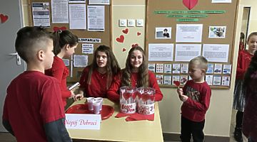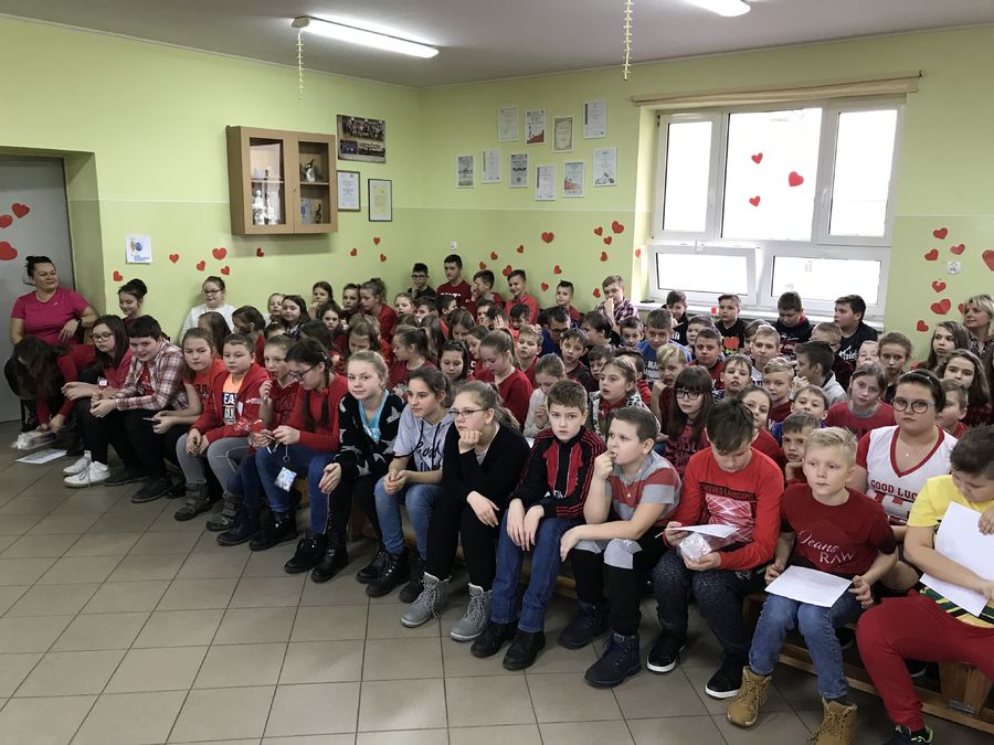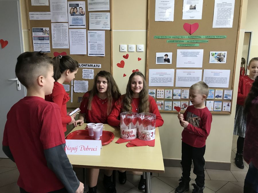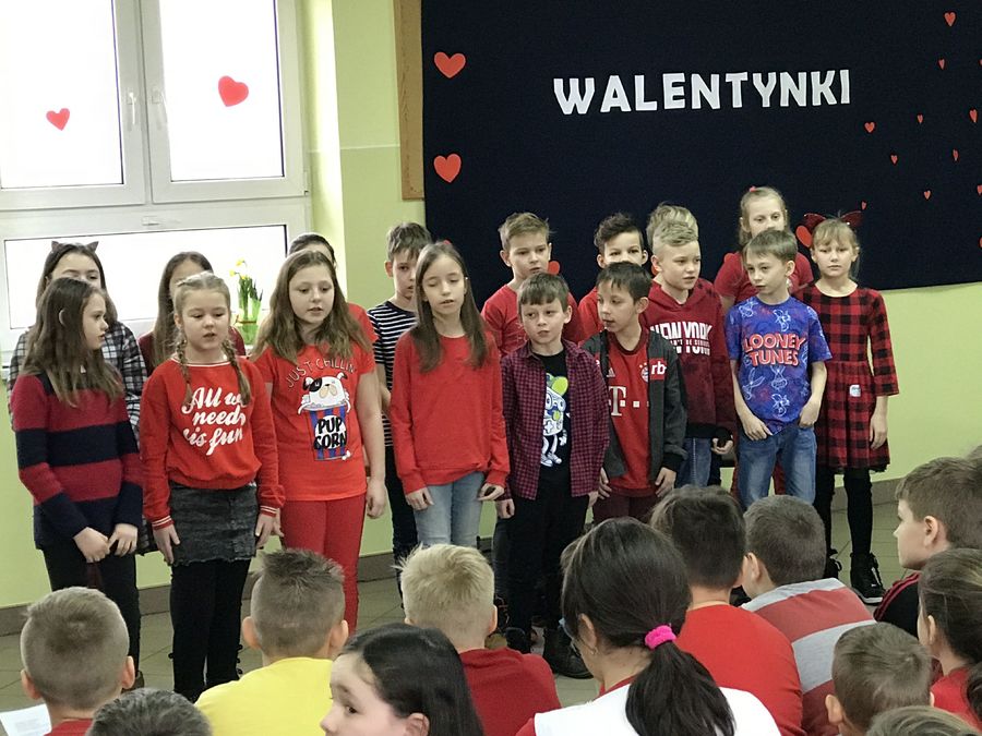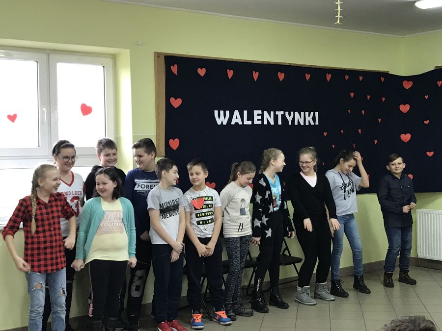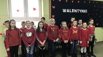 Walentynki w naszej szkole przebiegały pod hasłem „Łączymy przyjemne z pożytecznym”. Do tego święta uczniowie przygotowywali się kilka tygodni. Najpierw ogłoszone zostały konkursy klasowe na najładniejszą gazetkę oraz na najładniejszy walentynkowy sms. Każda klasa otrzymała za zadanie udekorowanie wybranej części korytarza szkolnego – serduszkami i słowami „Kocham Cię” w różnych językach. Na ścianach szkolnych korytarzy pojawiły się piękne cytaty o miłości wybitnych twórców literatury i filozofii. Tradycyjnie działała poczta walentynkowa. Główne obchody odbyły się oczywiście 14 lutego. Podsumowano konkursy, odbyły się apele, na których uczniowie kl. I-III, IV-VIII i III gimnazjum prezentowali piosenki, cytaty i wiersze o miłości, rozdano Walentynki. Szkolne Koło Wolontariatu sprzedawało lizaki – serduszka oraz „napój dobroci”. Pieniądze ze sprzedaży tych produktów (łącznie 287 zł) przekazane zostaną Fundacji „Siepomaga”.