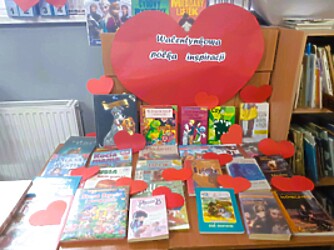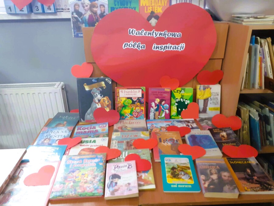Walentynkowy akcent znalazł się również w naszej szkolnej bibliotece, która przygotowała na ten dzień „walentynkową półkę inspiracj”i, na której każdy mógł znaleźć tematyczne propozycje literackie.