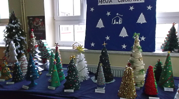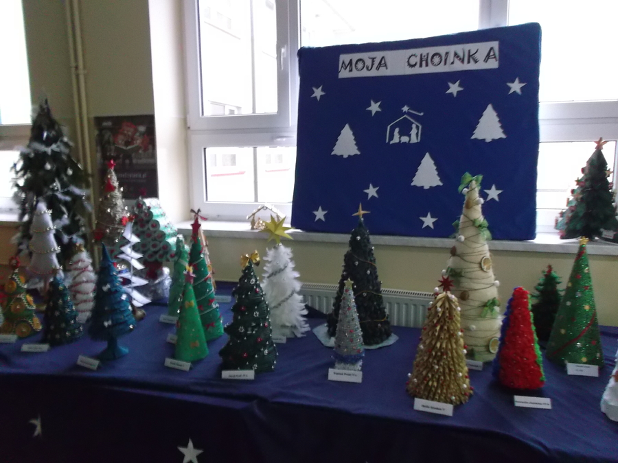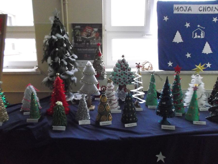 W grudniu w naszej szkole odbył się Szkolny Konkurs Plastyczny „Moja choinka”. Do udziału zaproszeni zostali uczniowie klas IV-VI szkoły podstawowej oraz I-III gimnazjum. Przedmiotem konkursu było stworzenie przestrzennej choinki świątecznej, wykonanej dowolną techniką plastyczną, z możliwością wykorzystania różnorodnych materiałów.